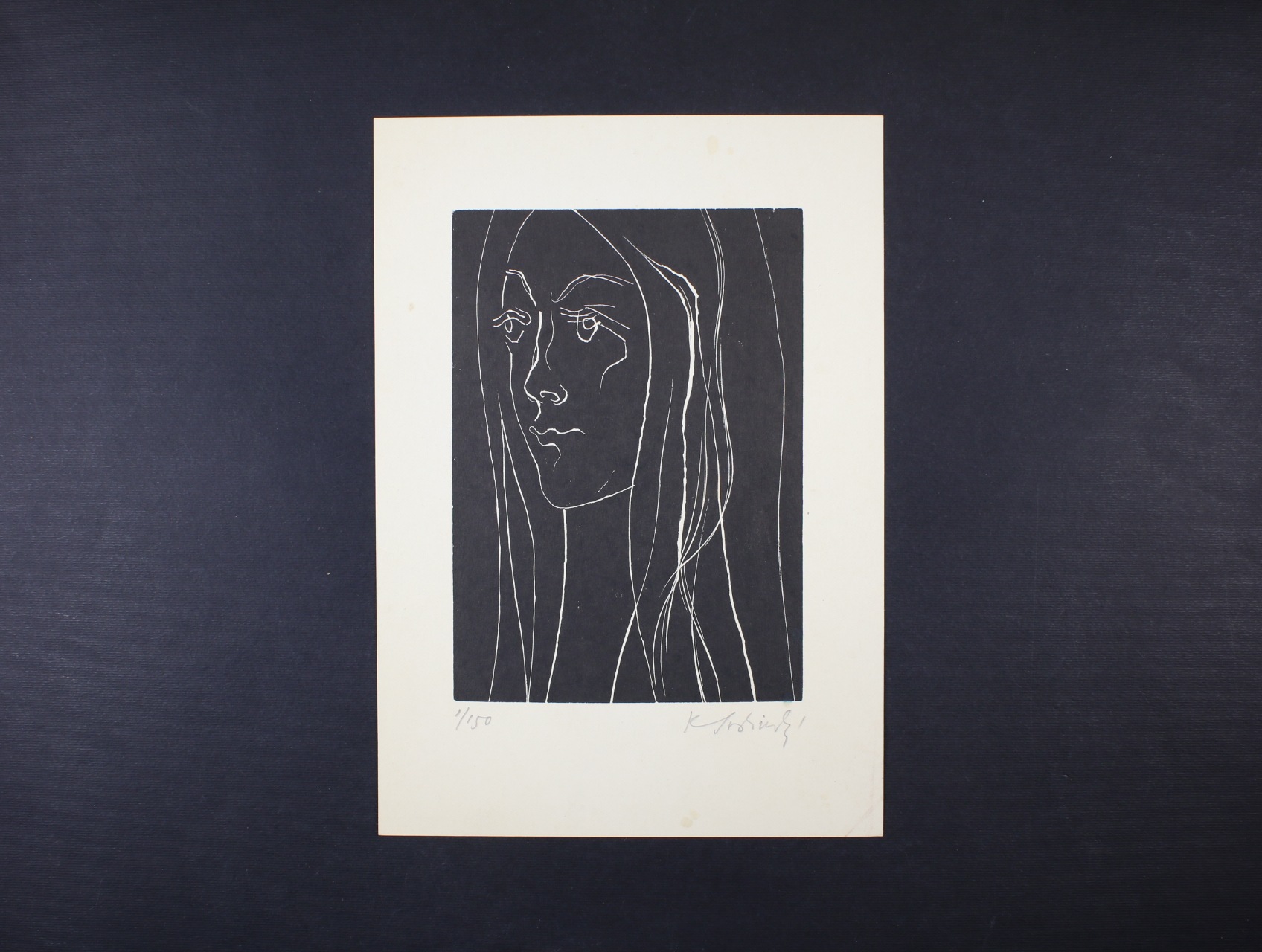 Drobná grafika - Karel Svolinský dívčí portrét - číslovaný dřevoryt (1/150) s vlastnoručním podpisem