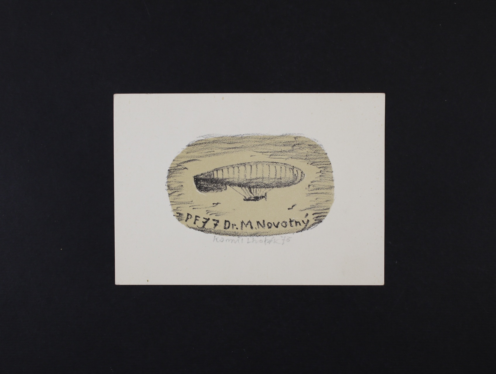 Drobná grafika - novoročenka z r. 1977 s podpisem Kamil Lhoták