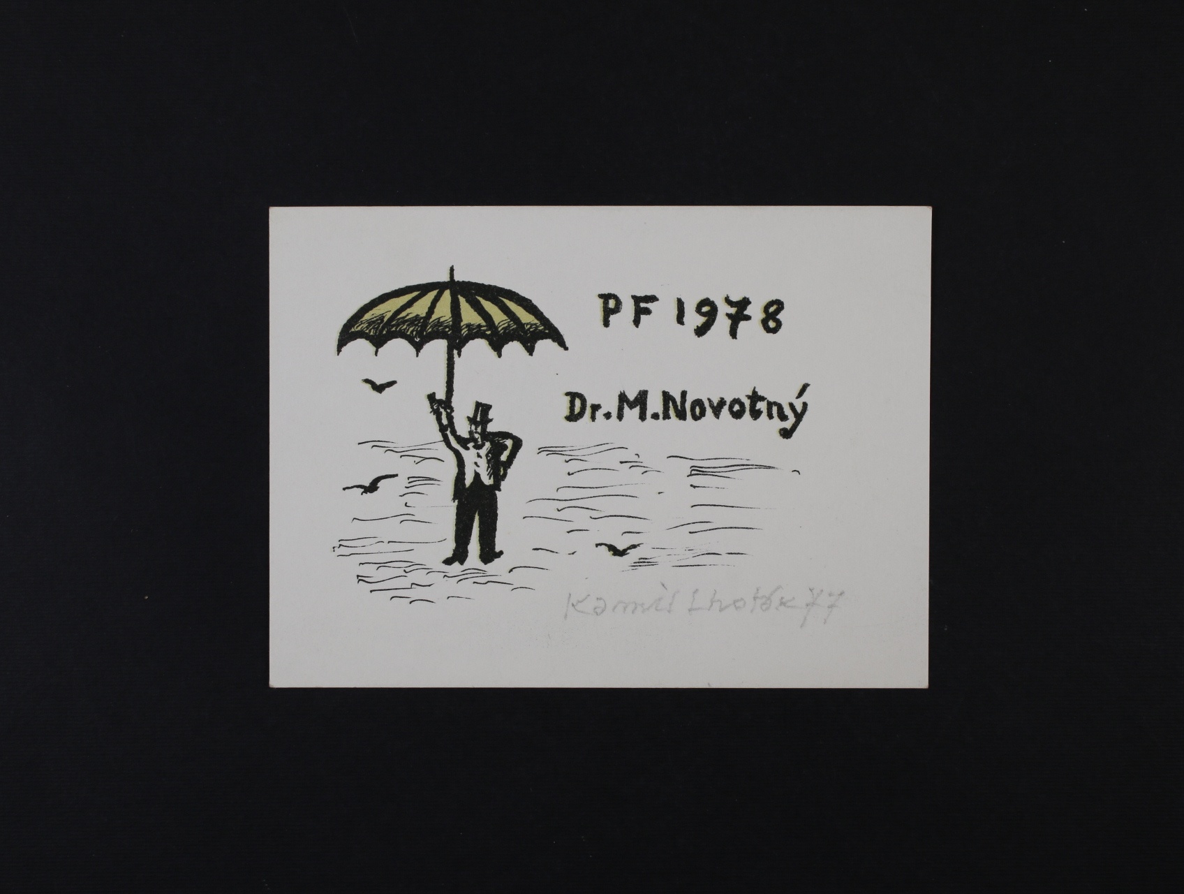 Drobná grafika - novoročenka z r. 1978 s podpisem Kamil Lhoták