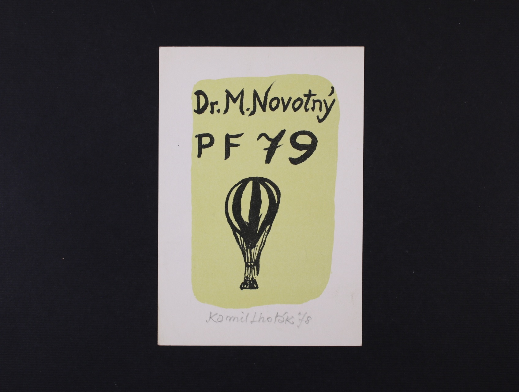 Drobná grafika - novoročenka z r. 1979 s podpisem Kamil Lhoták