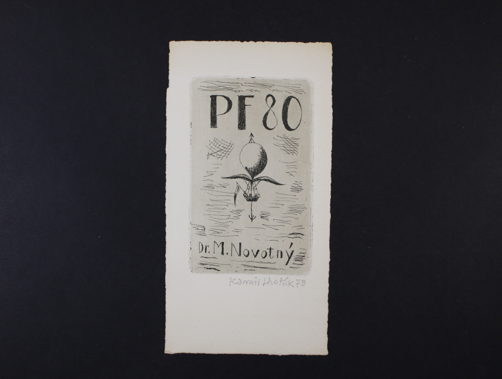 Drobná grafika - novoročenka z r. 1980 s podpisem Kamil Lhoták