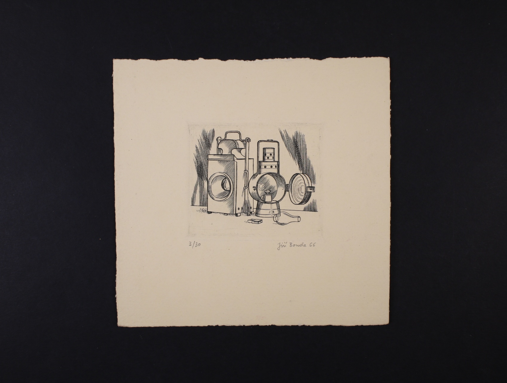 Drobná grafika - orig. číslovaná (3/30) rytina Jiřího Boudy z r. 1966 s vlastnoručním podpisem