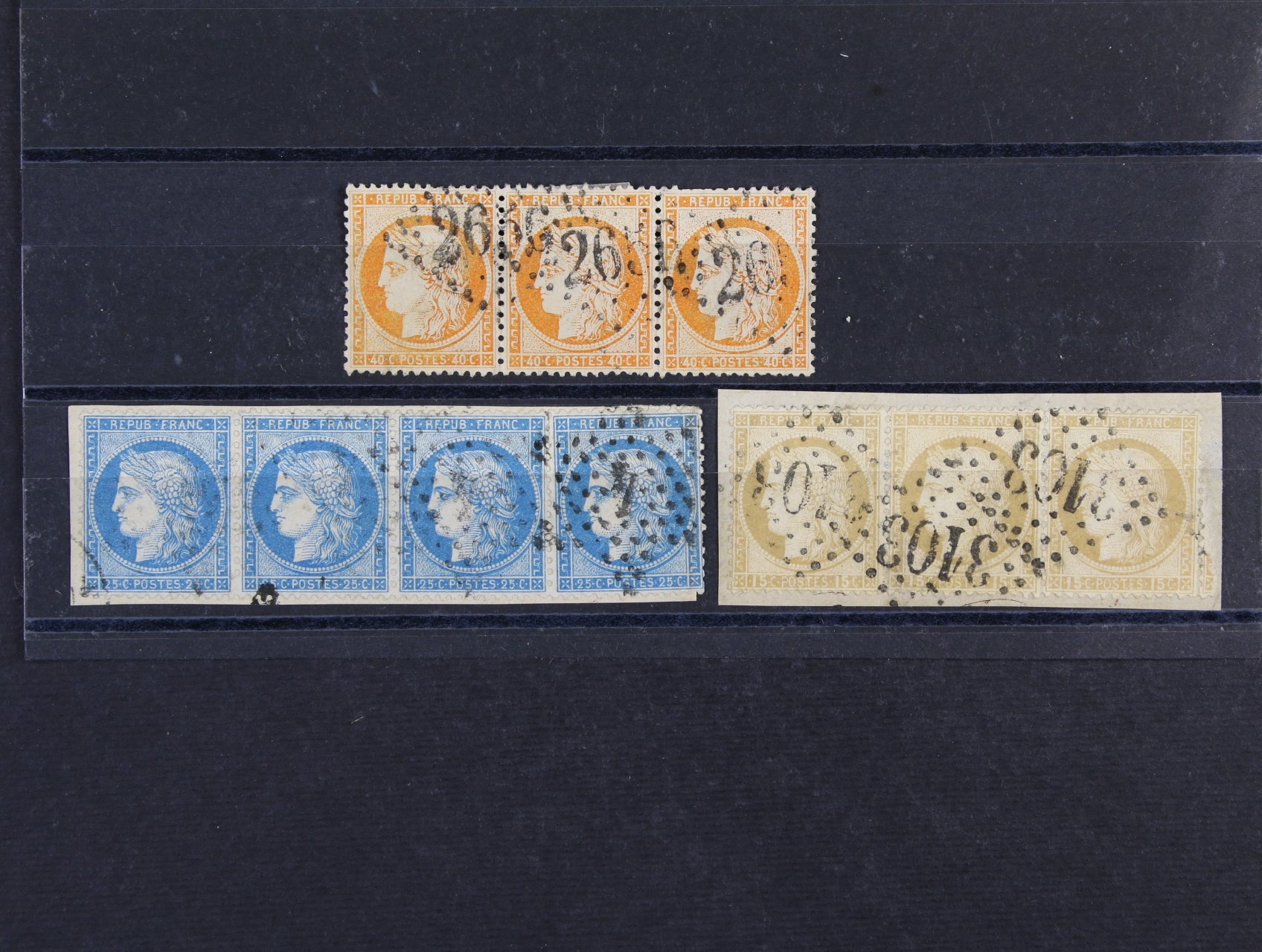 1564 zn. Mi. č. 35 ve vodorovné třípásce s čís. raz. 26, zn. Mi. č. 51 ve vodorovné čtyřpásce na malém výstřižku, znehodnoc. čís. hvězdicovým raz. 4, zn. Mi. č. 53 ve vodorovné třípásce na malém výstřižku s čís. kosočtvercovým raz. 3103, zajímavé 1500