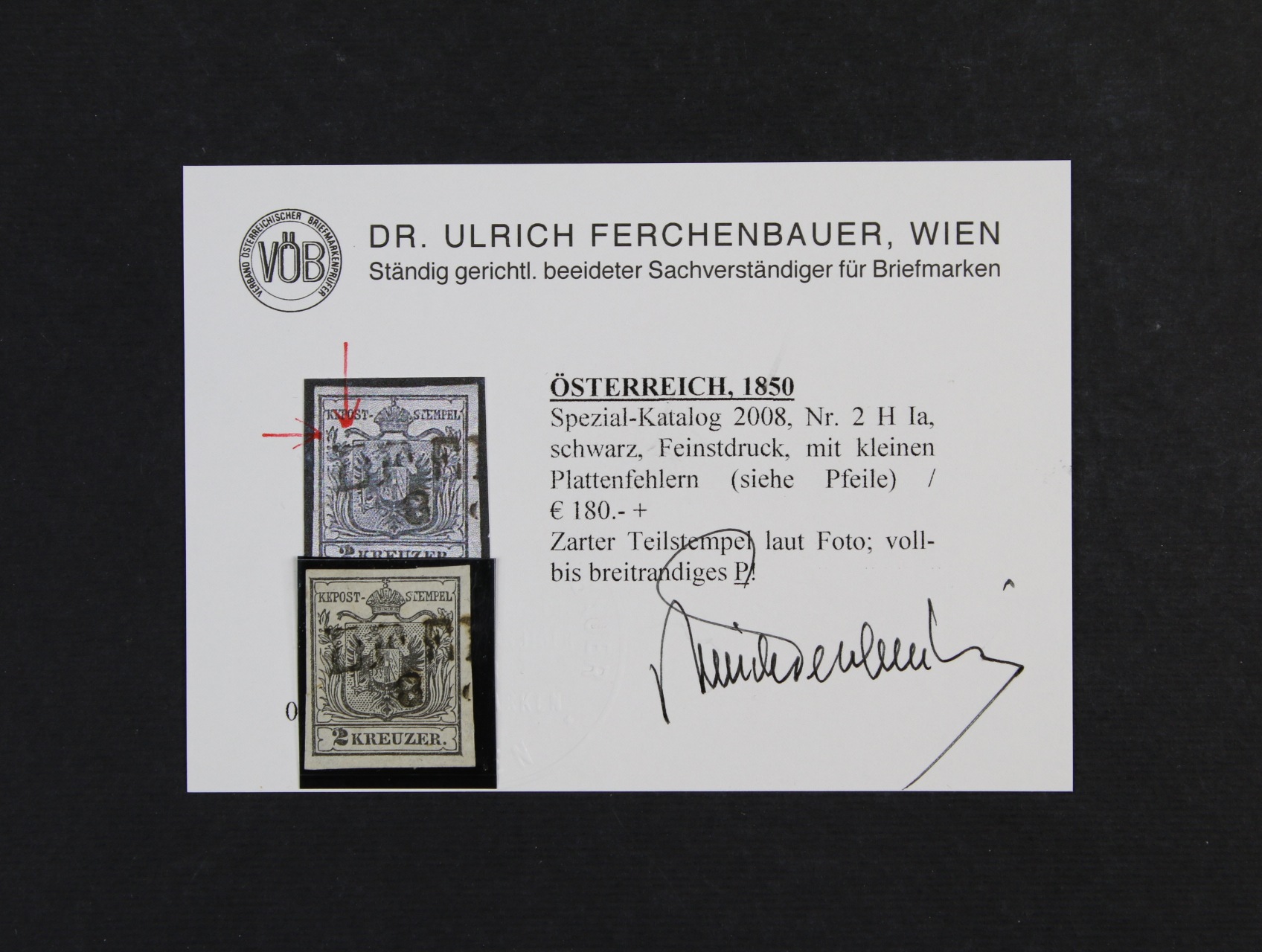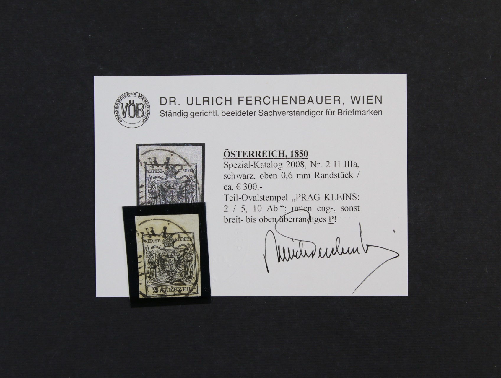 1701 zn. Fe. č. 2 H, typ IIIa černá s horním okrajem 6 mm a s téměř kompl. raz. PRAG KLEINS 2.5., zk. a atest Ferchenbauer, cca 300 EUR 1200
