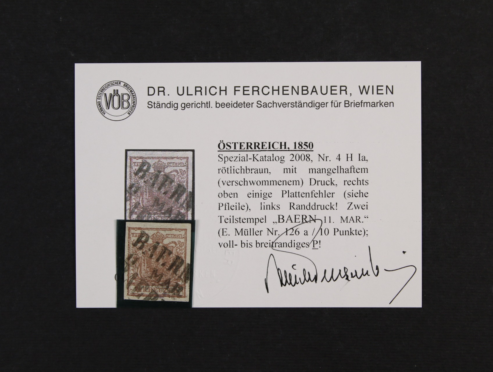 1713 zn. Fe. č. 4 H, typ Ia červenohnědá s řádk. raz. BAERN 11.MAR., zk. a atest Ferchenbauer 300