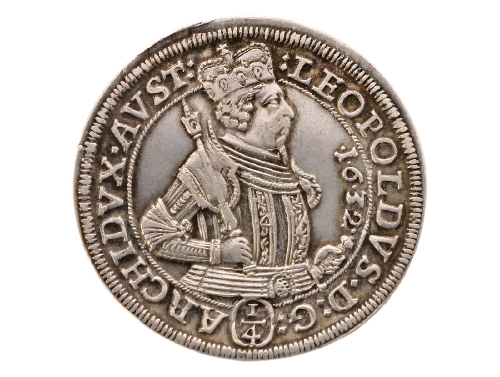 207 Arcivévoda Leopold 1619 - 1632 - 1/4 Tolar 1632 Hall 14000