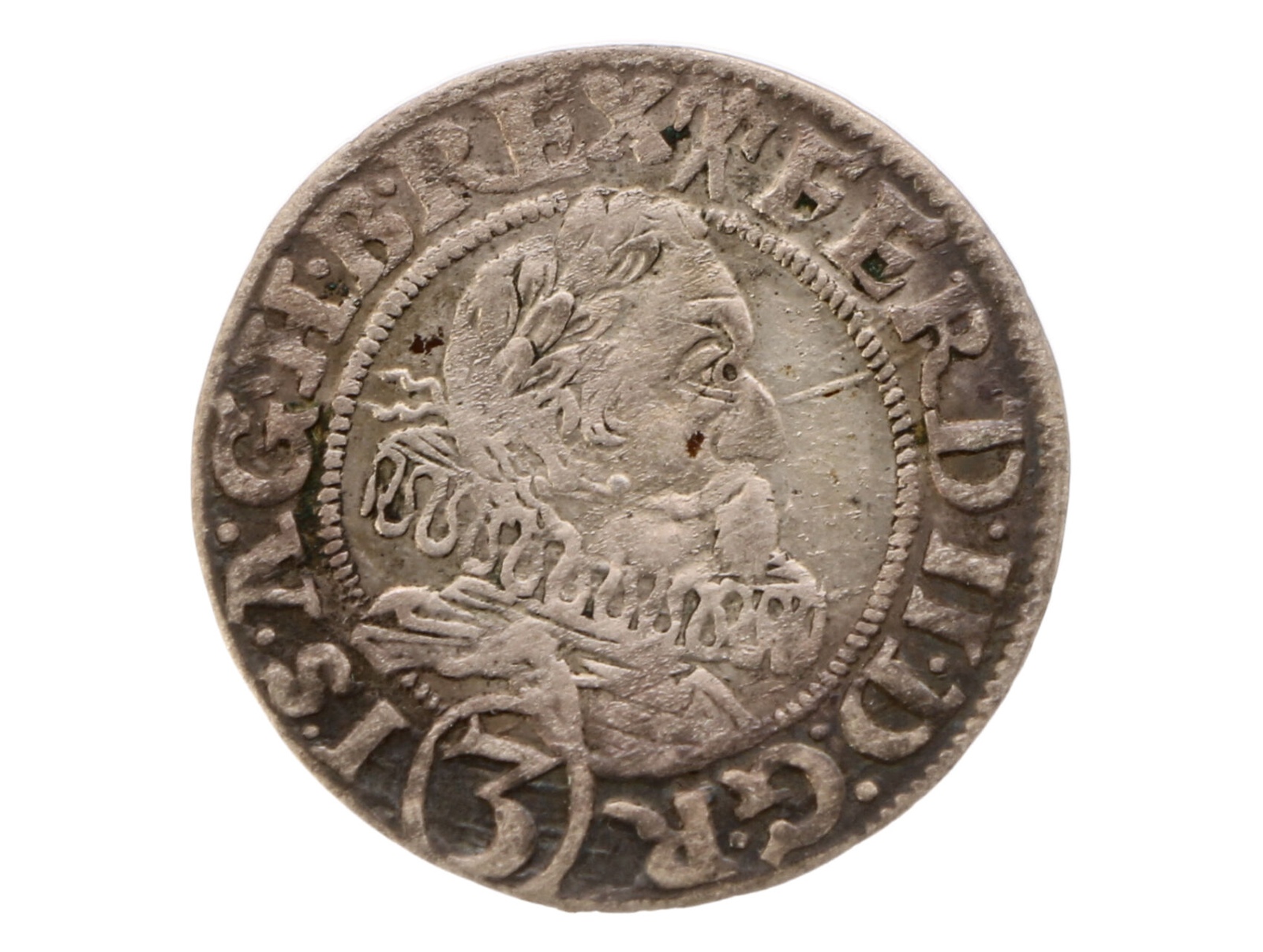 Ferdinand II. 1619-1637 - 3 krejcar 1635, Praha, T. Schuster, 1,26 g., N 37, Hal.763, s chybou v opisu RER místo REX, JČB-1184