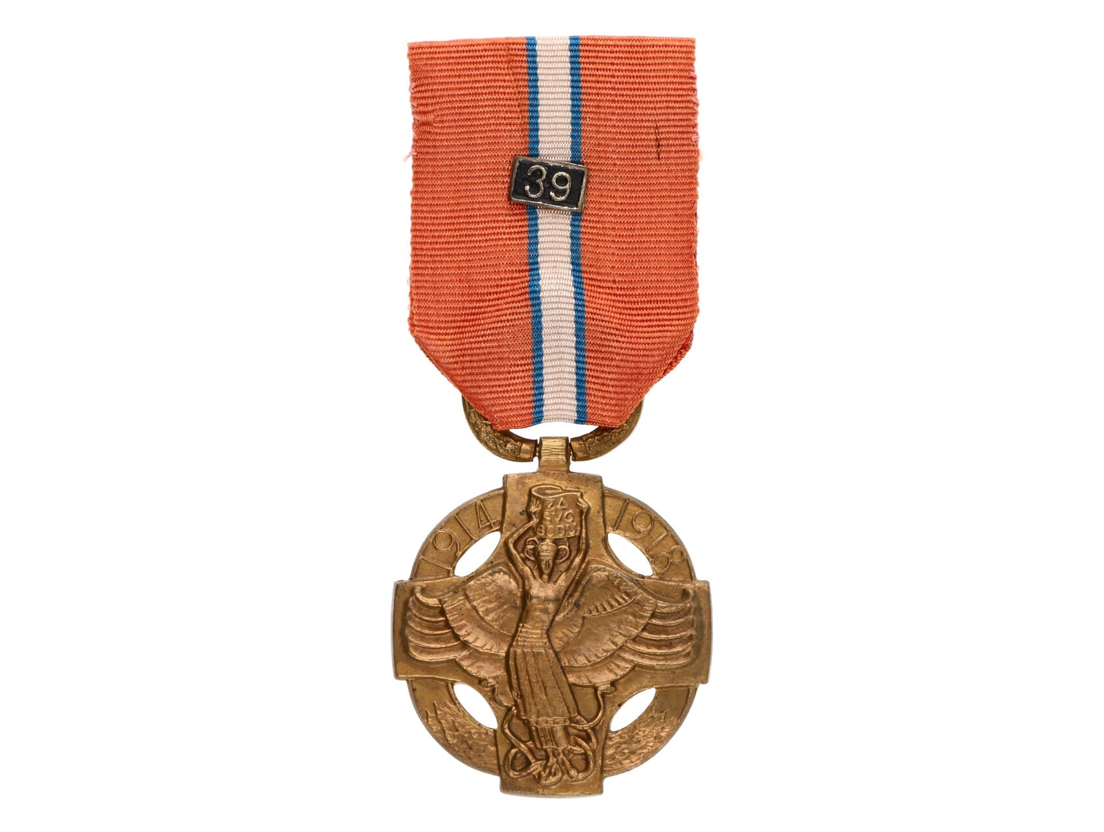 Československá revoluční medaile, Pařížské vydání, neodseknuté ouško na závěsném kruhu, se štítkem 39, VM6, N6a