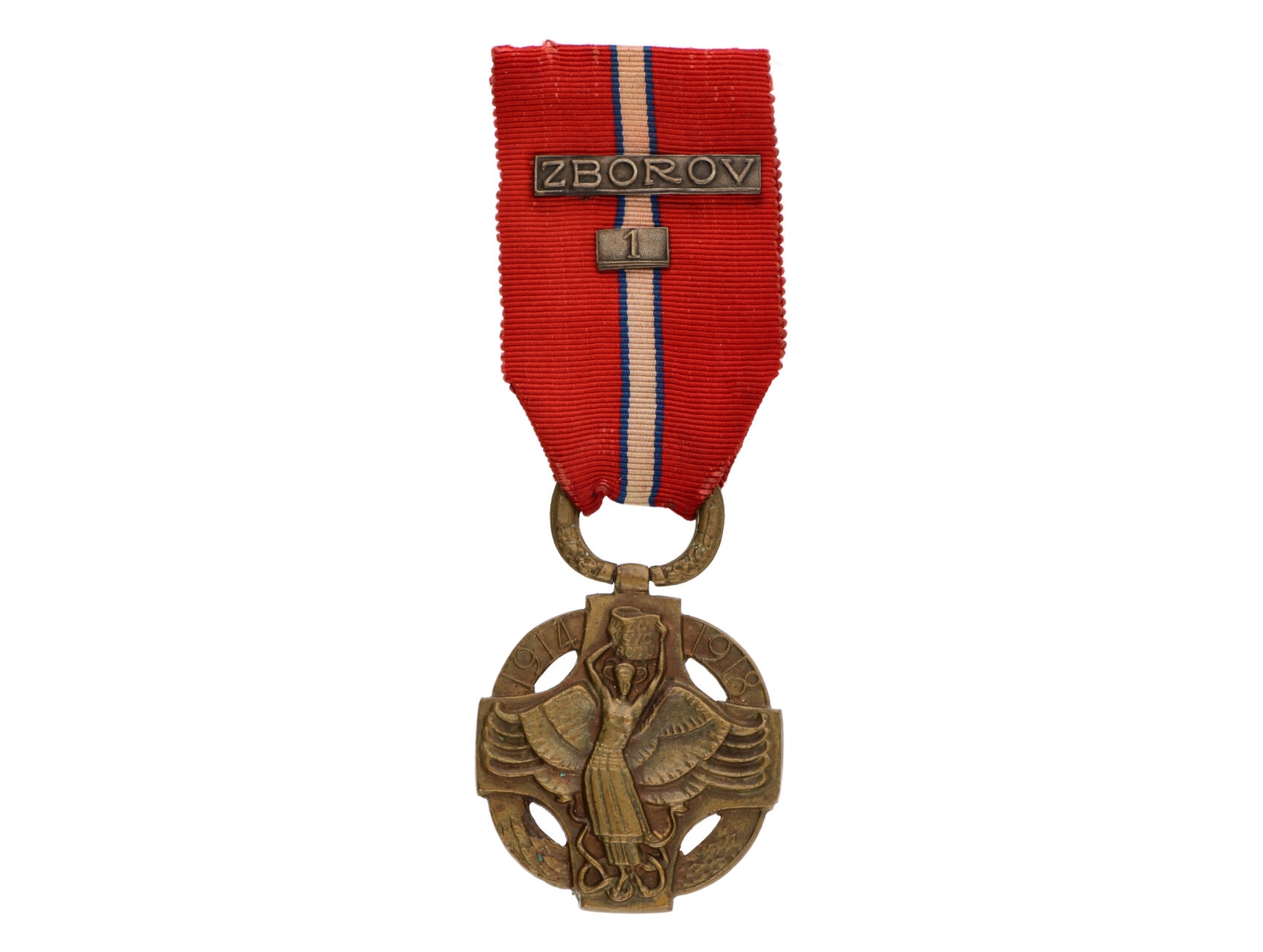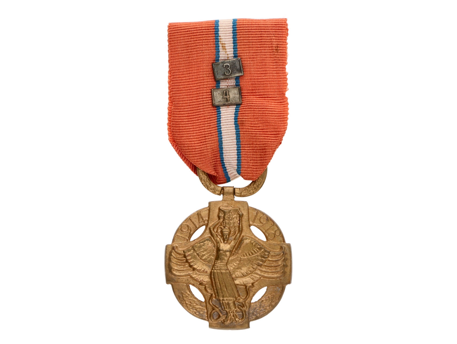 Československá revoluční medaile, Pařížské vydání, neodseknuté ouško na závěsném kruhu, se štítky 3 a 4, VM6, N6a
