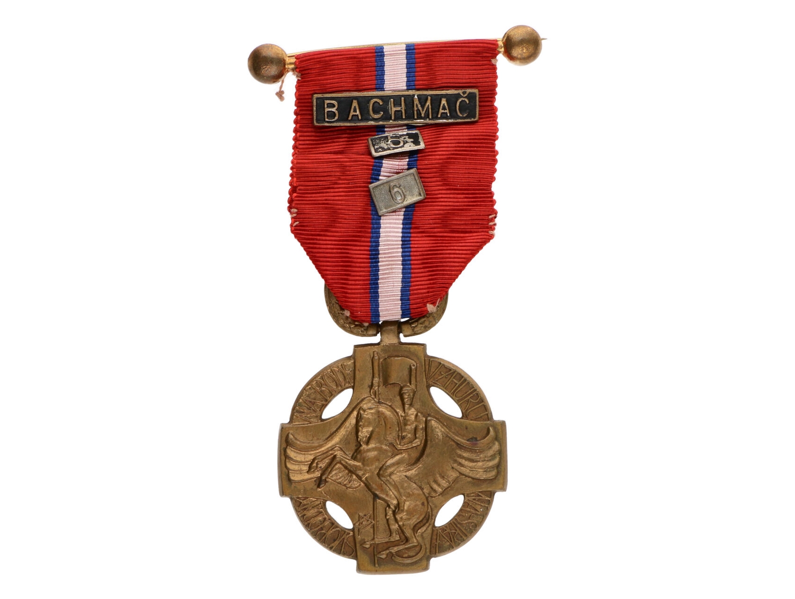 Československá revoluční medaile, varianta z těžkého kovu a s podpisem medailéra, se štítky BACHMAČ, 5 a 6, VM6, N6b