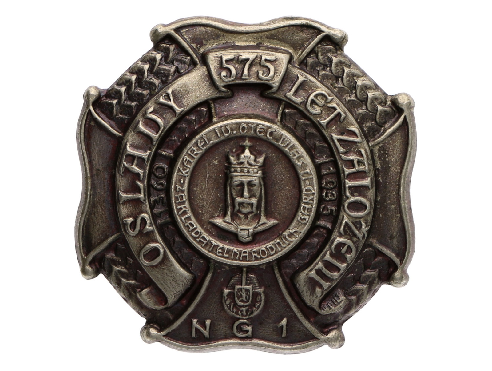 Pamětní odznak SNG k 575. výročí vzniku národních gard, N.G.1, průměr 25mm, upínání na vodorovnou jehlu, VM79, N102