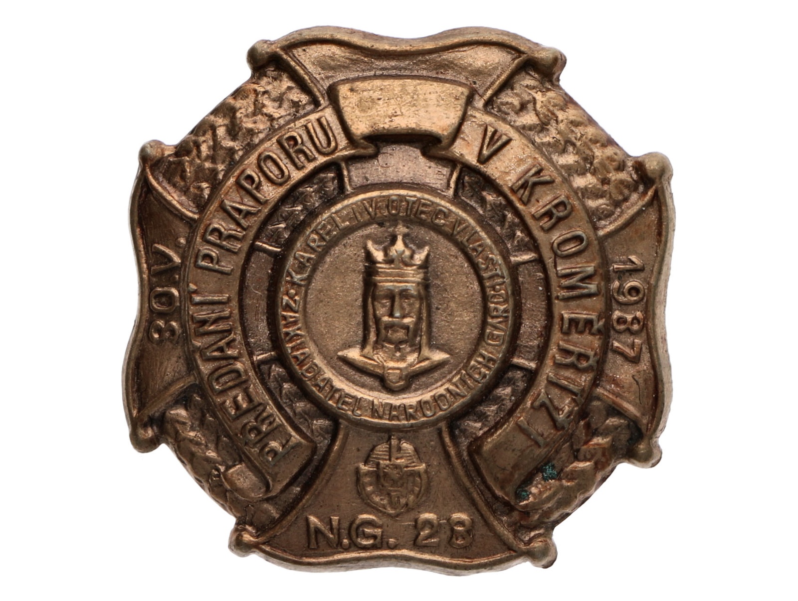 Pamětní odznak SNG k předání praporu v Kroměříži 30.VI.1937, N.G.23, průměr 25mm, upínání na vodorovnou jehlu, VM79, N102