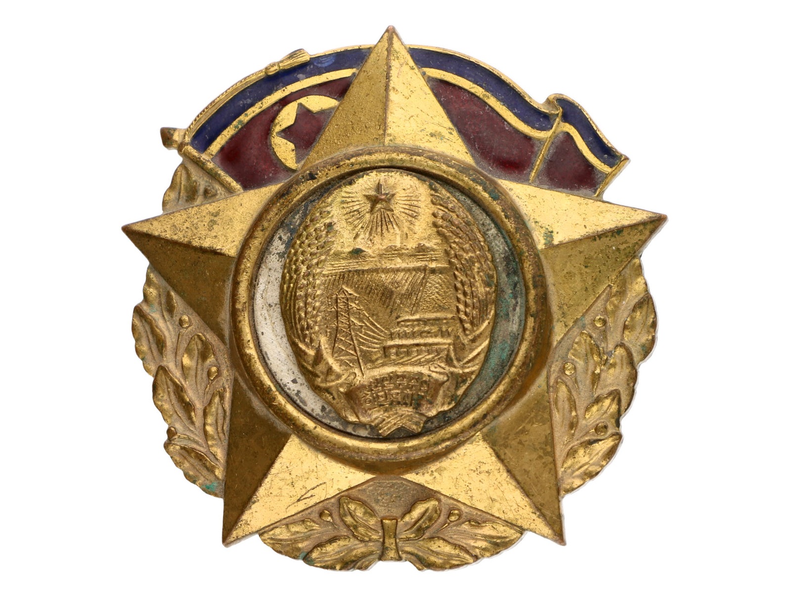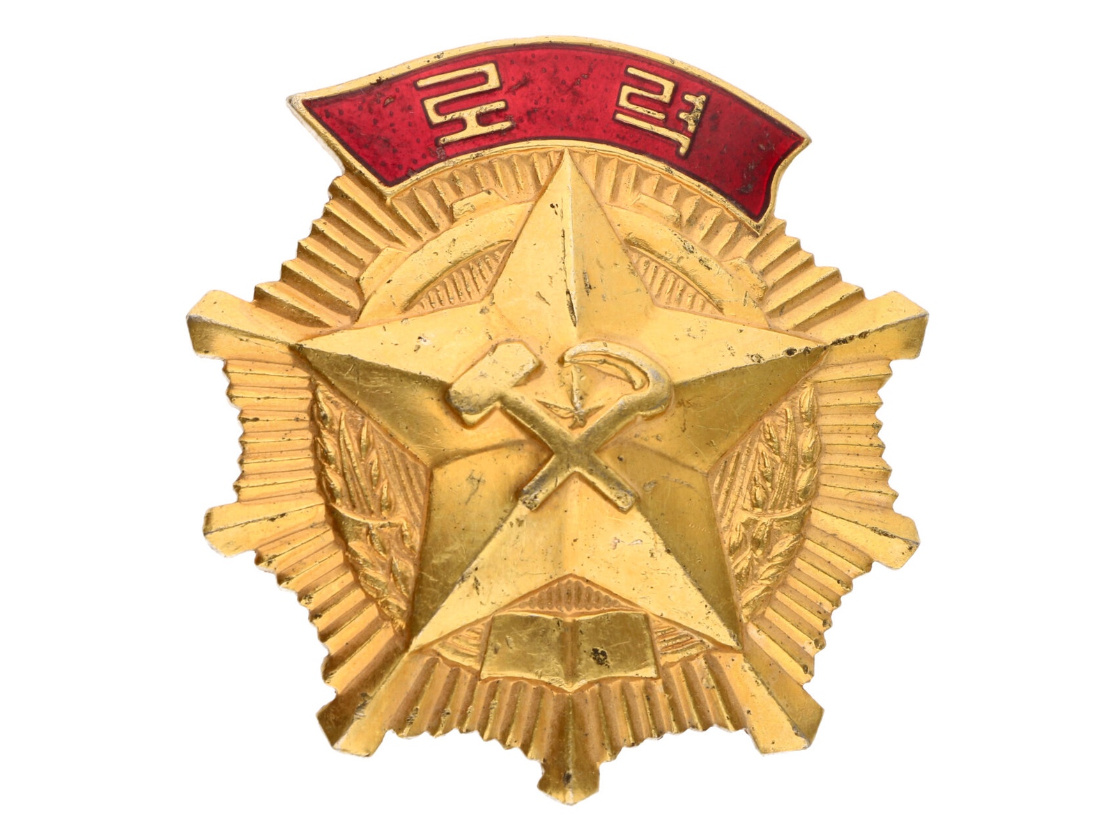 444 Severní Korea - Řád korejské práce, pozlacený bronz, smalt, průměr 60 mm, upínání na svislou jehlu 500