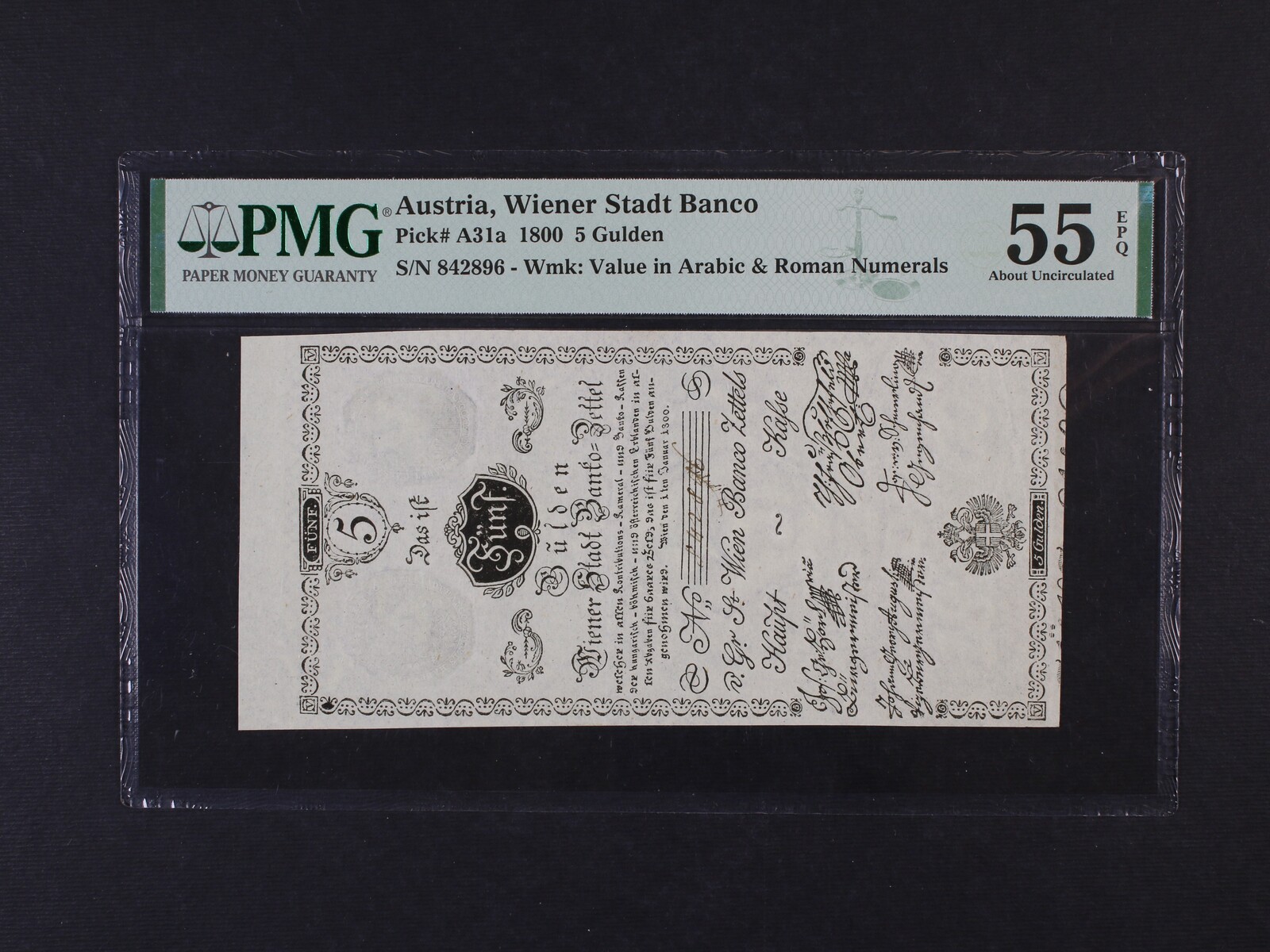 457 5 Gulden 1.1.1800, Ri. 32, Pi. A31, PMG 55 6000
