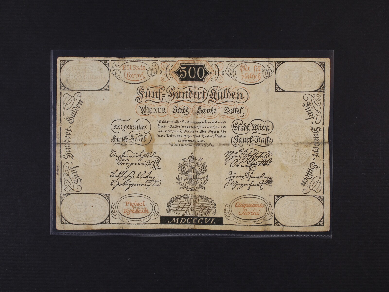 460 500 Gulden 1.6.1806, Ri. 44, hezká zachovalost, extrémě vzácný 500000
