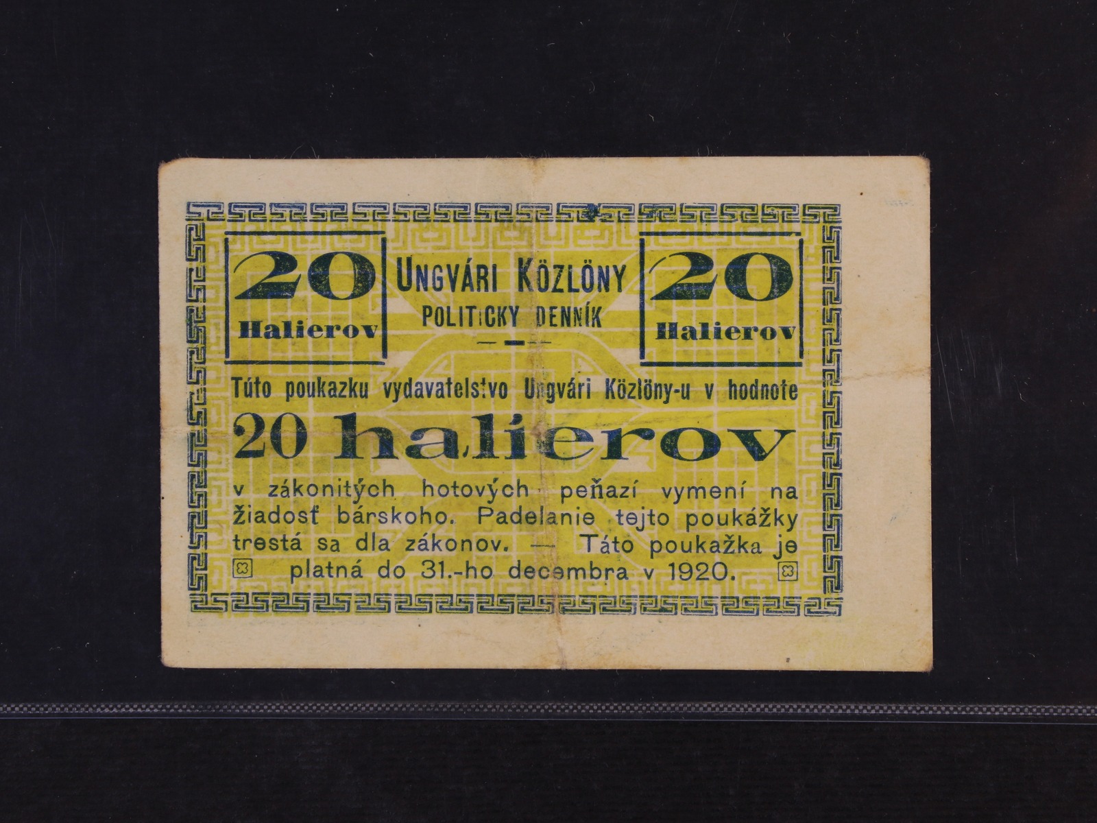 Ungvár (Užhorod), 20 h b.d. (do 31.12.1920), H.H. 229.1.1a, vzácná