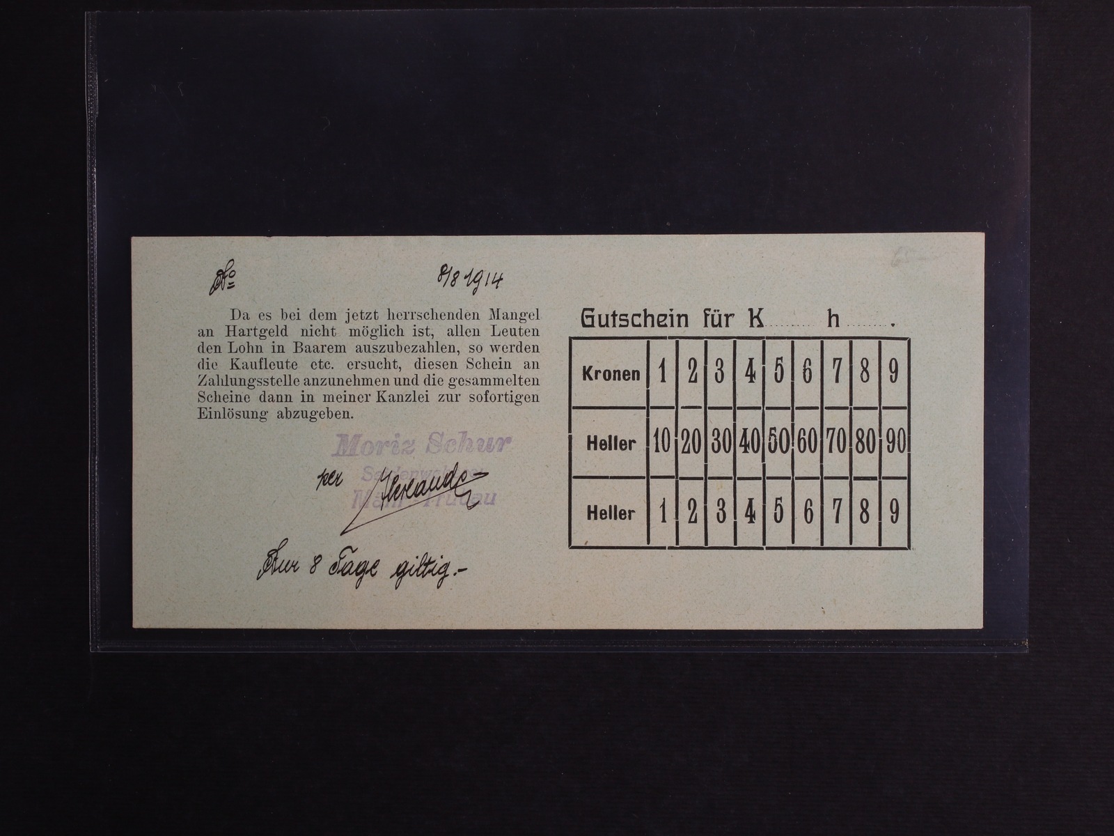 Mährisch Trübau (Moravská Třebová), 9 K 99 h 8.8.1914 Moritz Schur, H.H. 133.6.1b