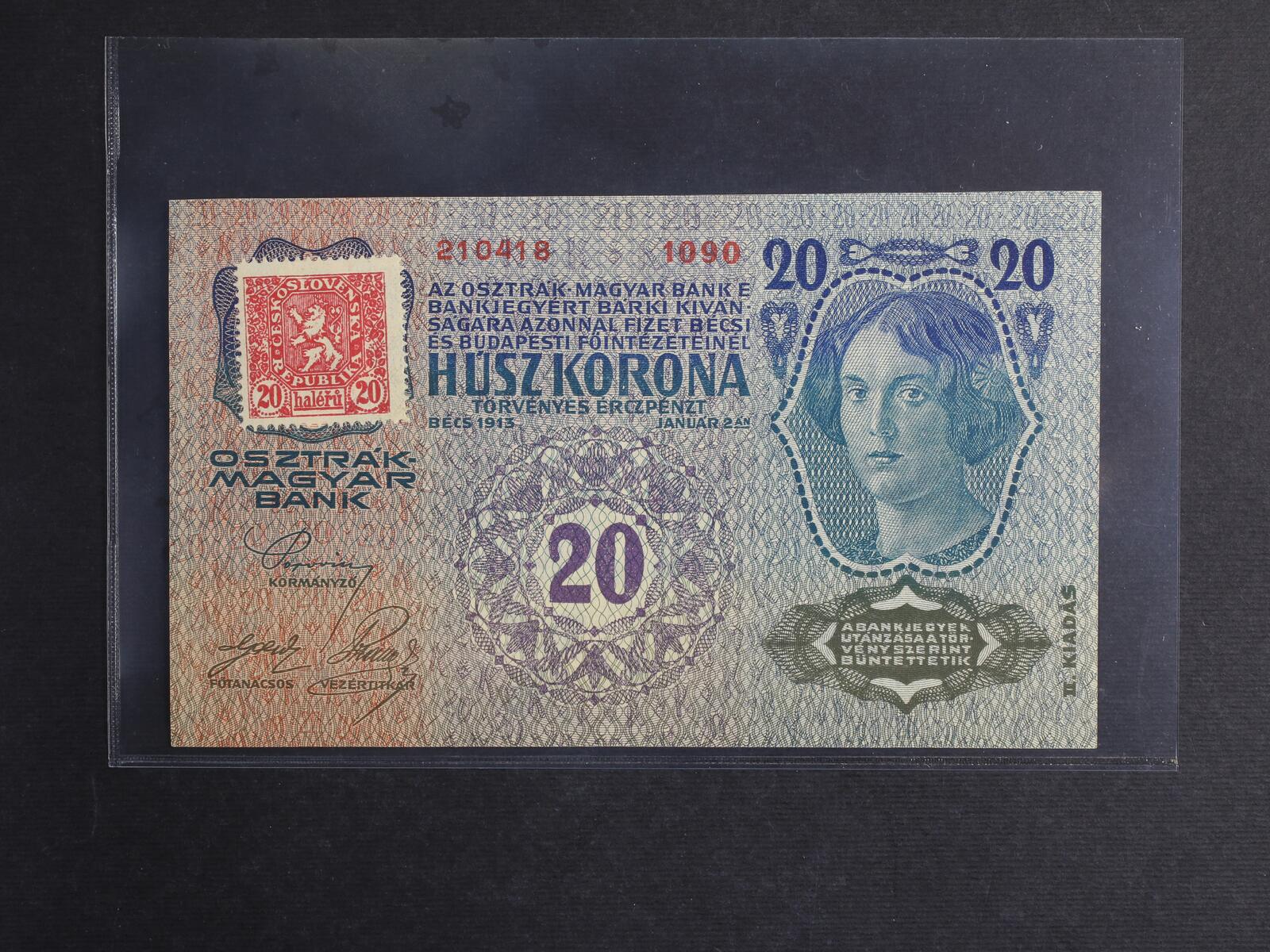 20 K 2.1.1913 II.vydání kolkovaná série 1090, Ba. 3, Pi. 2A
