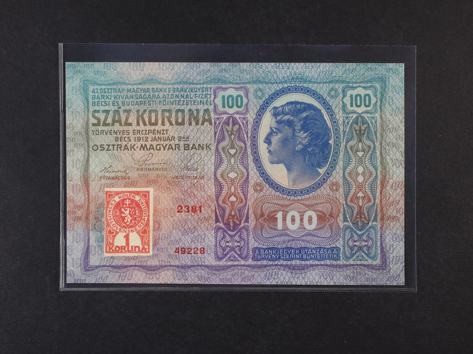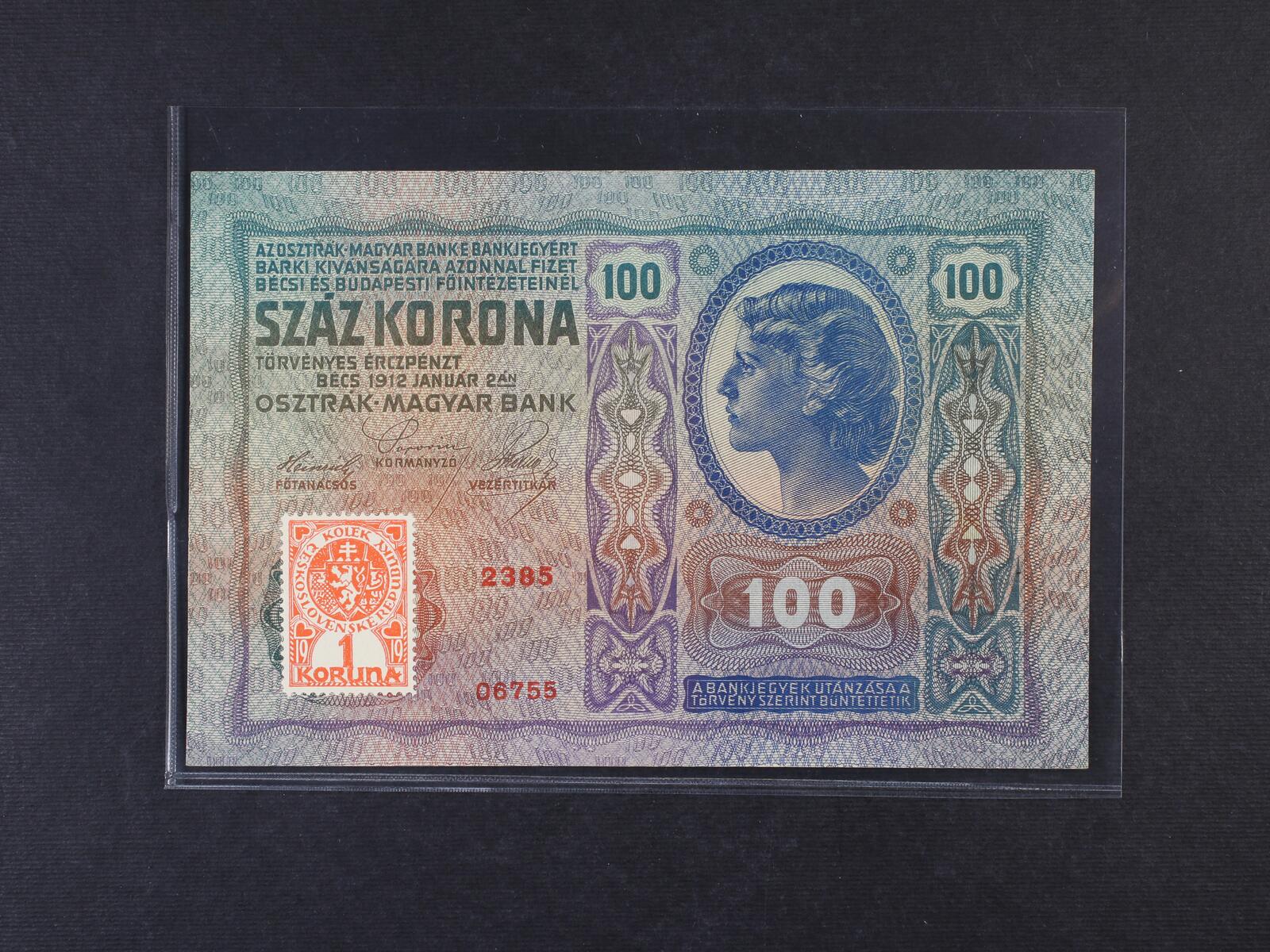 100 K 2.1.1912 série 2385 kolkovaná zoubkovaným kolkem, Ba. 5b, Pi. 4a