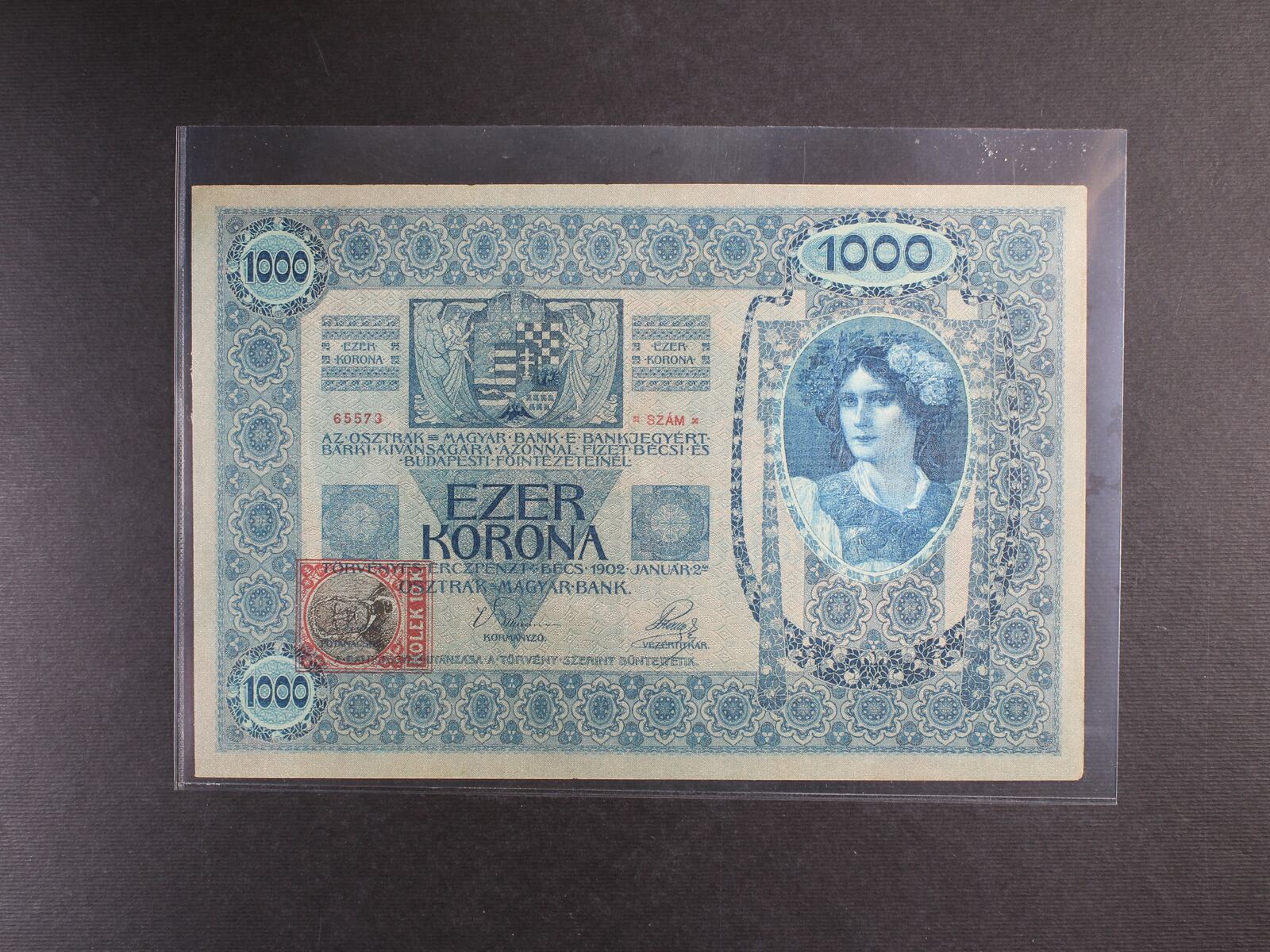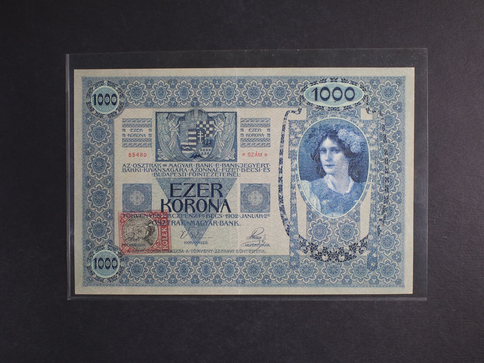 padělek, 1000 K 2.1.1902 kolkovaná falešným kolkem, série 1253, šedý podtisk, Ba. 6, Pi. 5