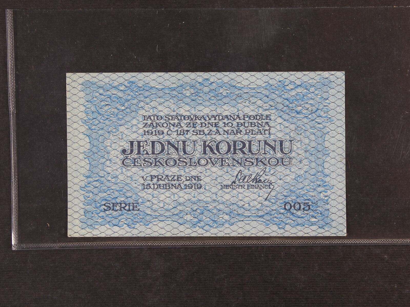 1 Kč 15.4.1919 série 005, modrá, Ba. 7, Pi. 6a