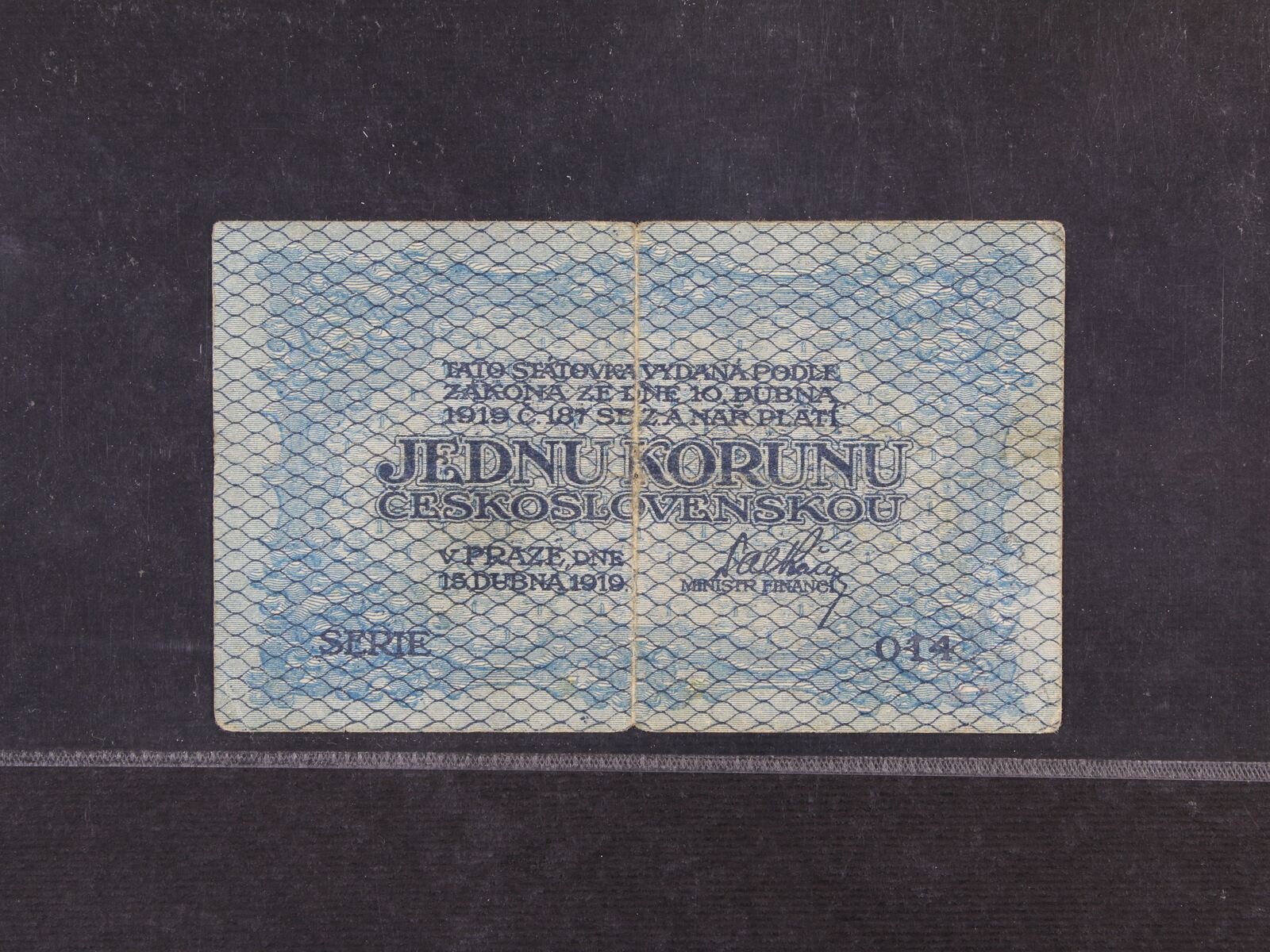 1 Kč 15.4.1919 série 014 se správným datem, modrá, Ba. 7, Pi. 6a