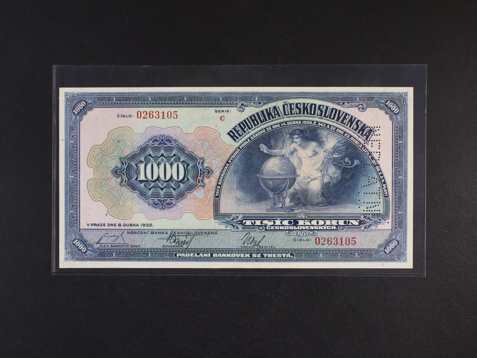 576 1000 Kč 8.4.1932 série C bankovní vzor, vpravo svisle perf. NEPLATNÉ, Ba. 26, Pi. 25s, He. 26 S7 15000