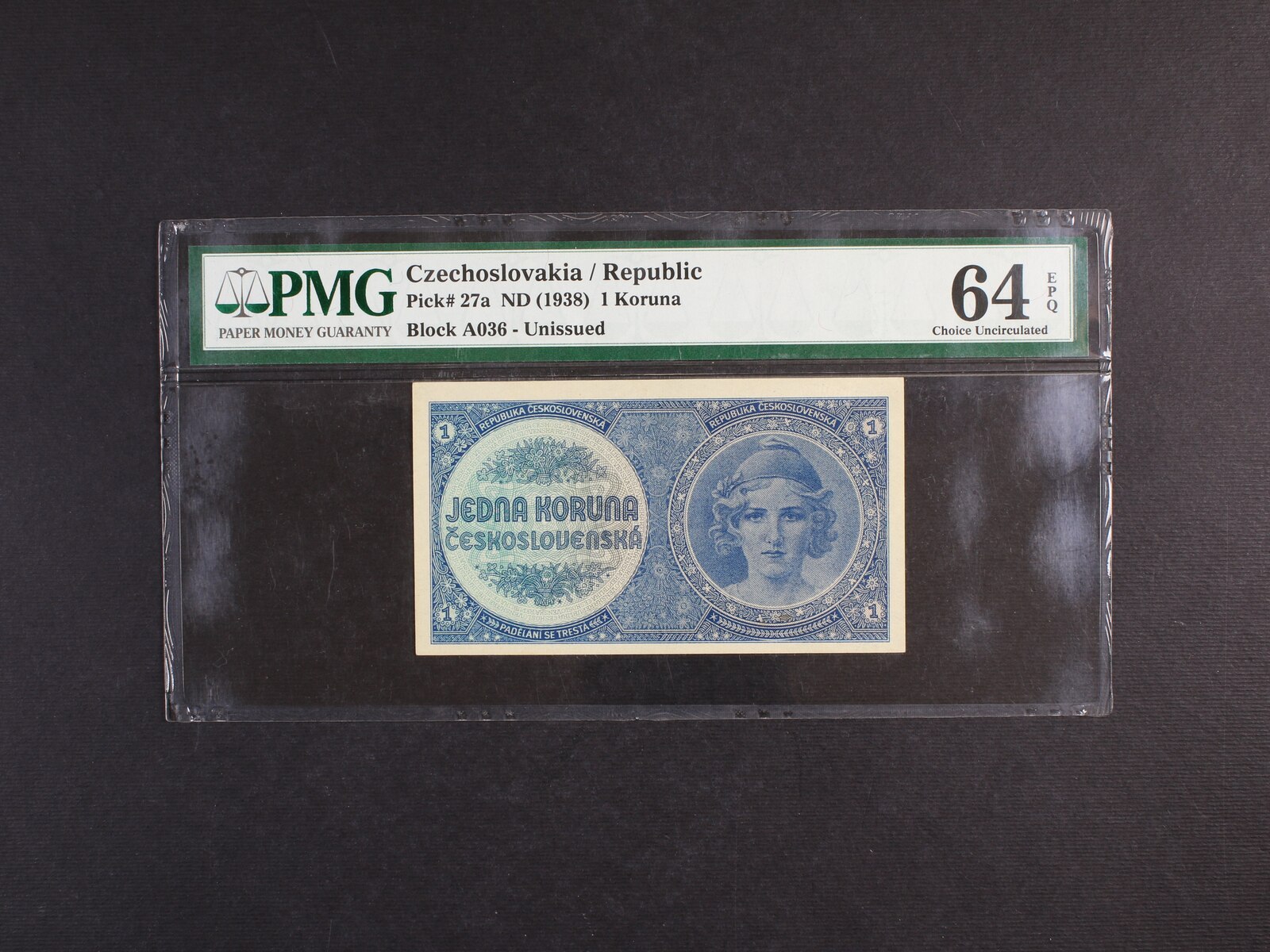 579 1 Kč 1938 série A 036 nevydaná, Ba. N1, Pi. 27, PMG 64 3000