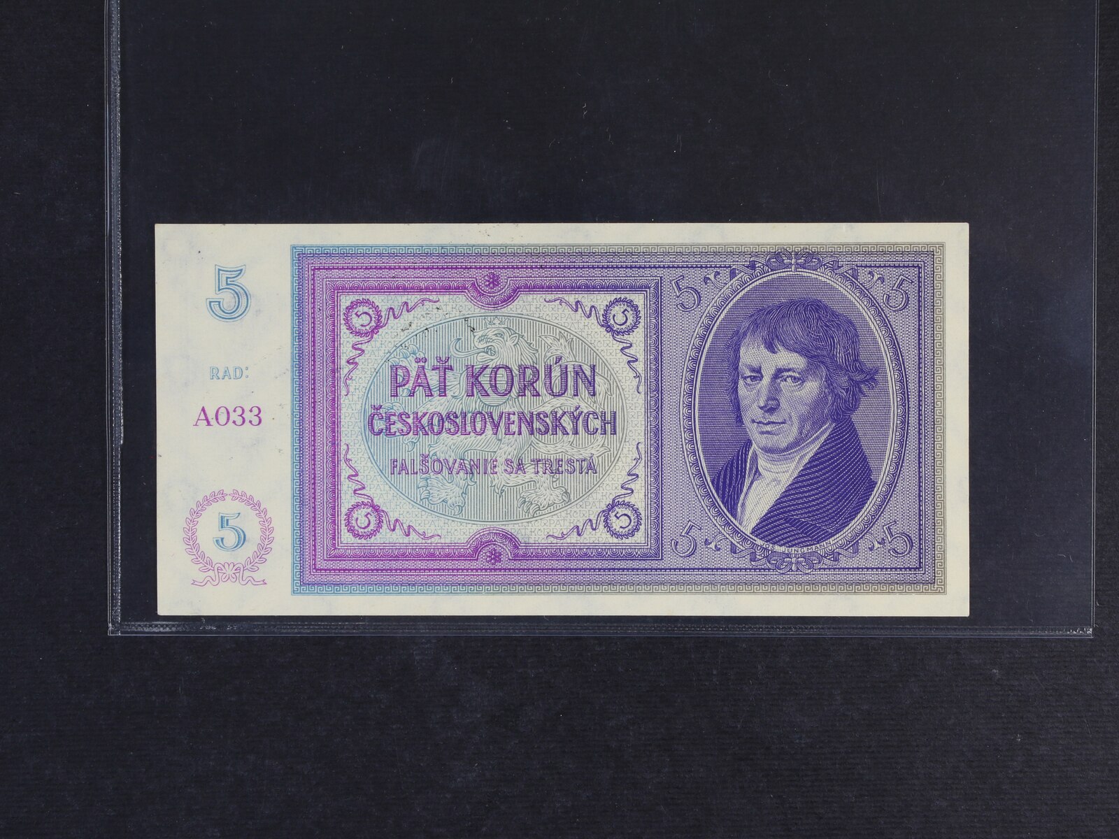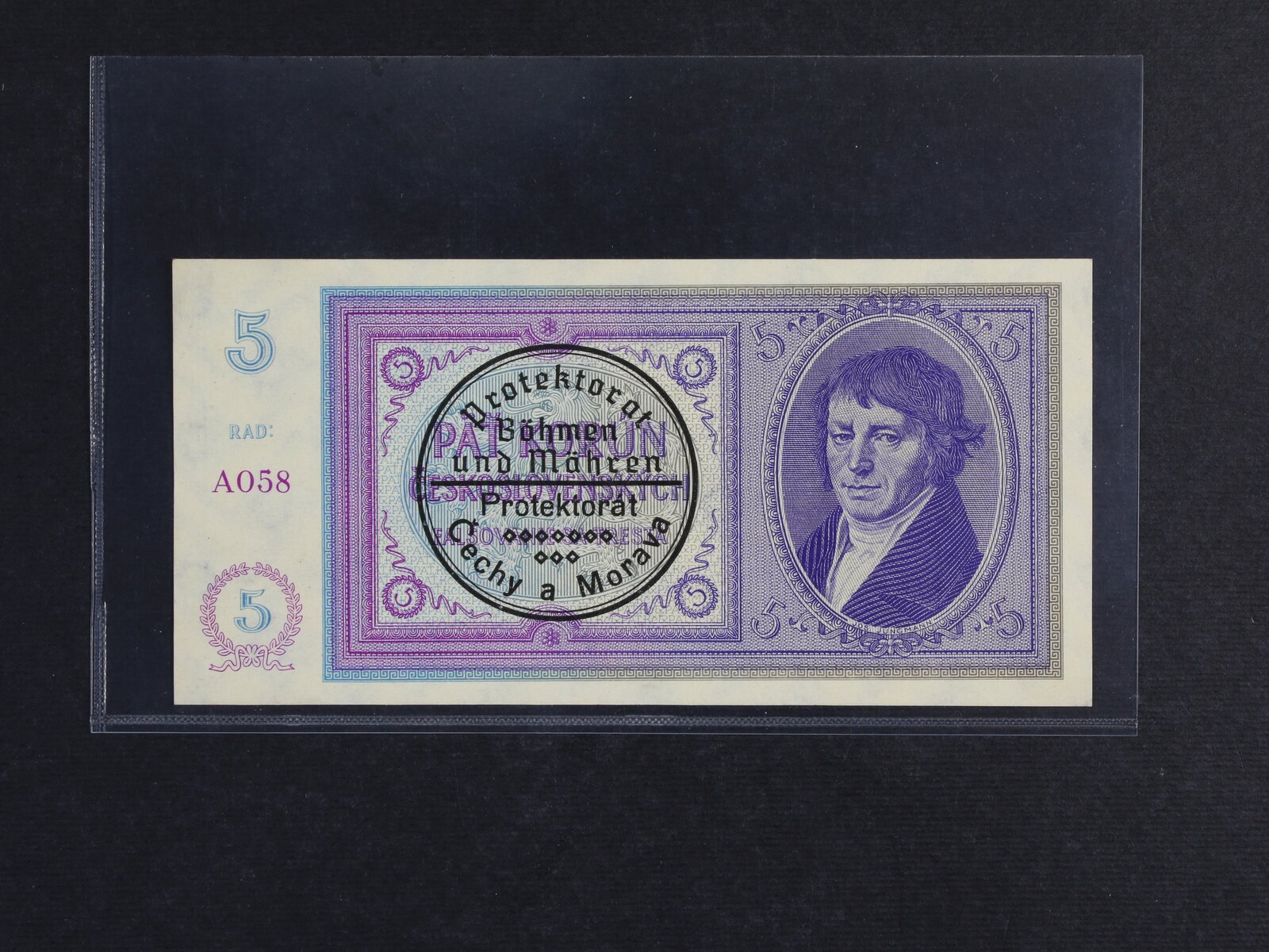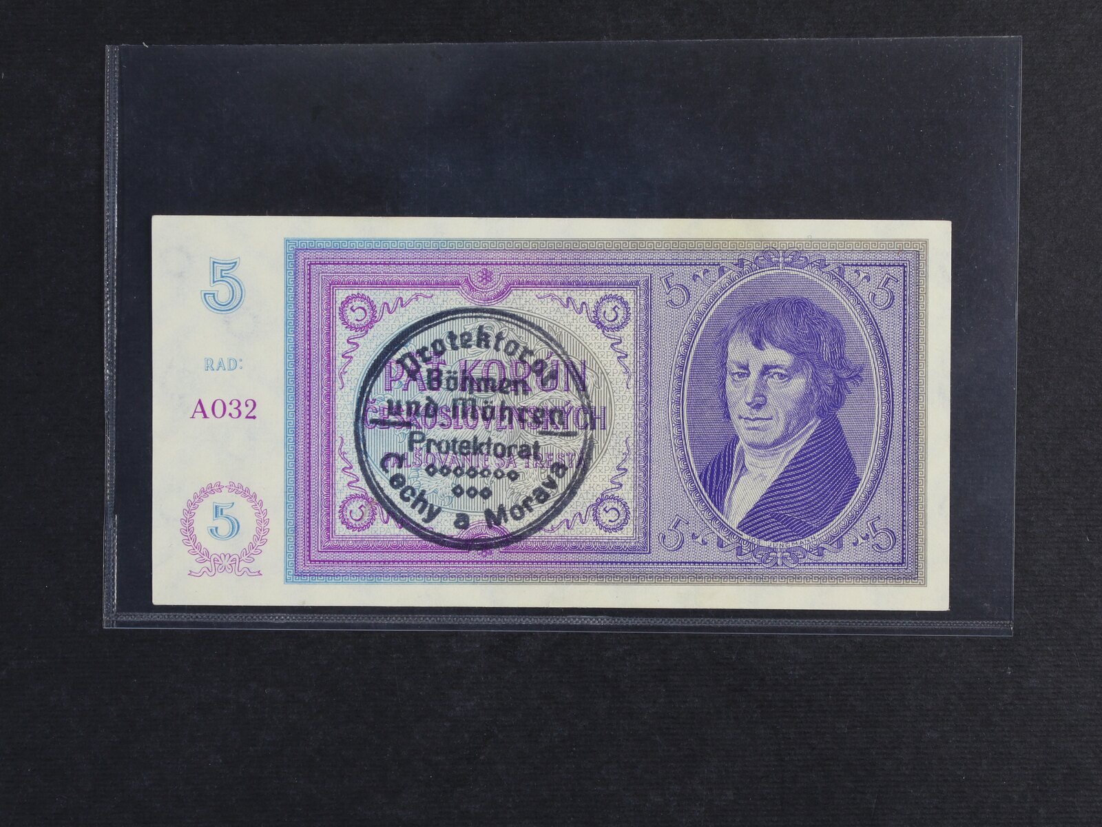 5 K 1938/40 s ručním raz. série A 032, Ba. 29a, Pi. 2a