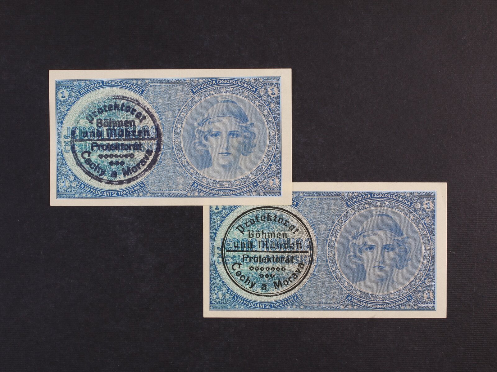 1 K 1938/40 s ručním raz. A 047 a strojním raz. A 010, Ba. 28a, b, Pi. 1a, b, 2 kusy