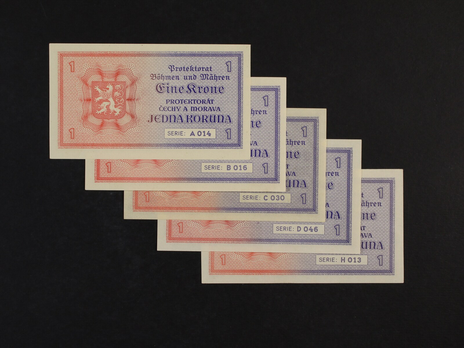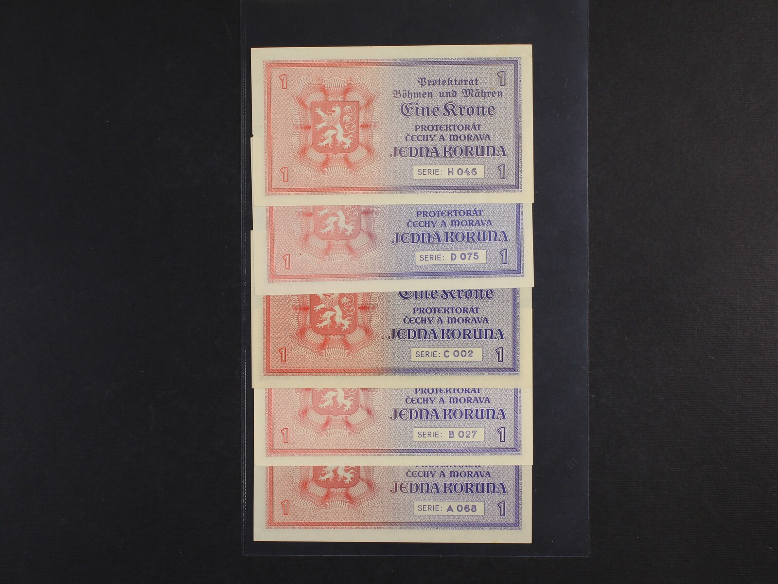 1 K 1940 série A 068, B 027, C 002, D 075, H 046 (stav 0/0), Ba. 30, Pi. 3a, 5 kusů