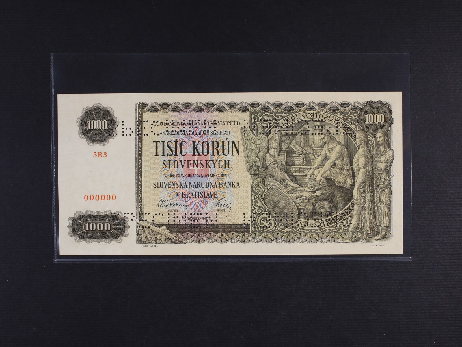 1000 Ks 25.11.1940 série 5R3 anulát, bankovní vzor s 4x vodorovnou perforací SPECIMEN, Ba. 51s, Pi. 13s, He. 51 V1