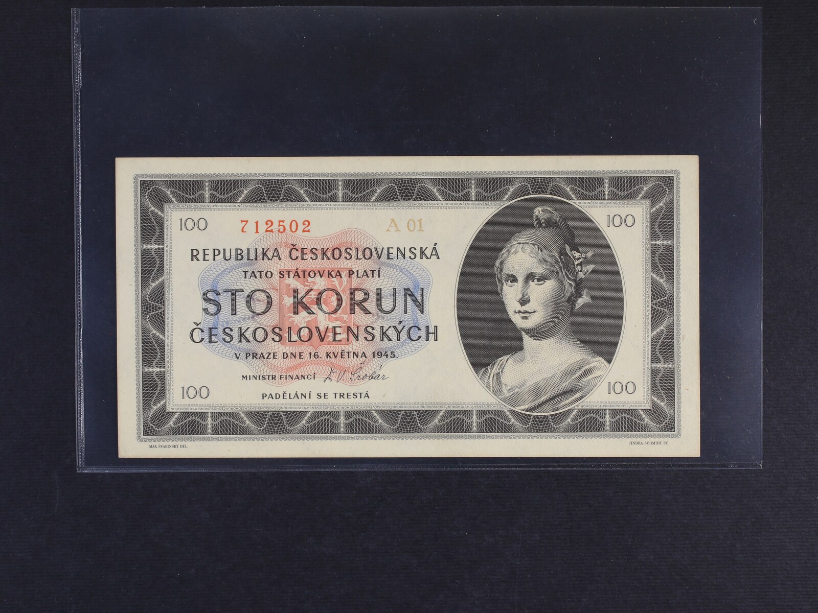 723 100 Kčs 16.5.1945 série A 01, Ba. 77a1, Pi. 67a, první série 2000