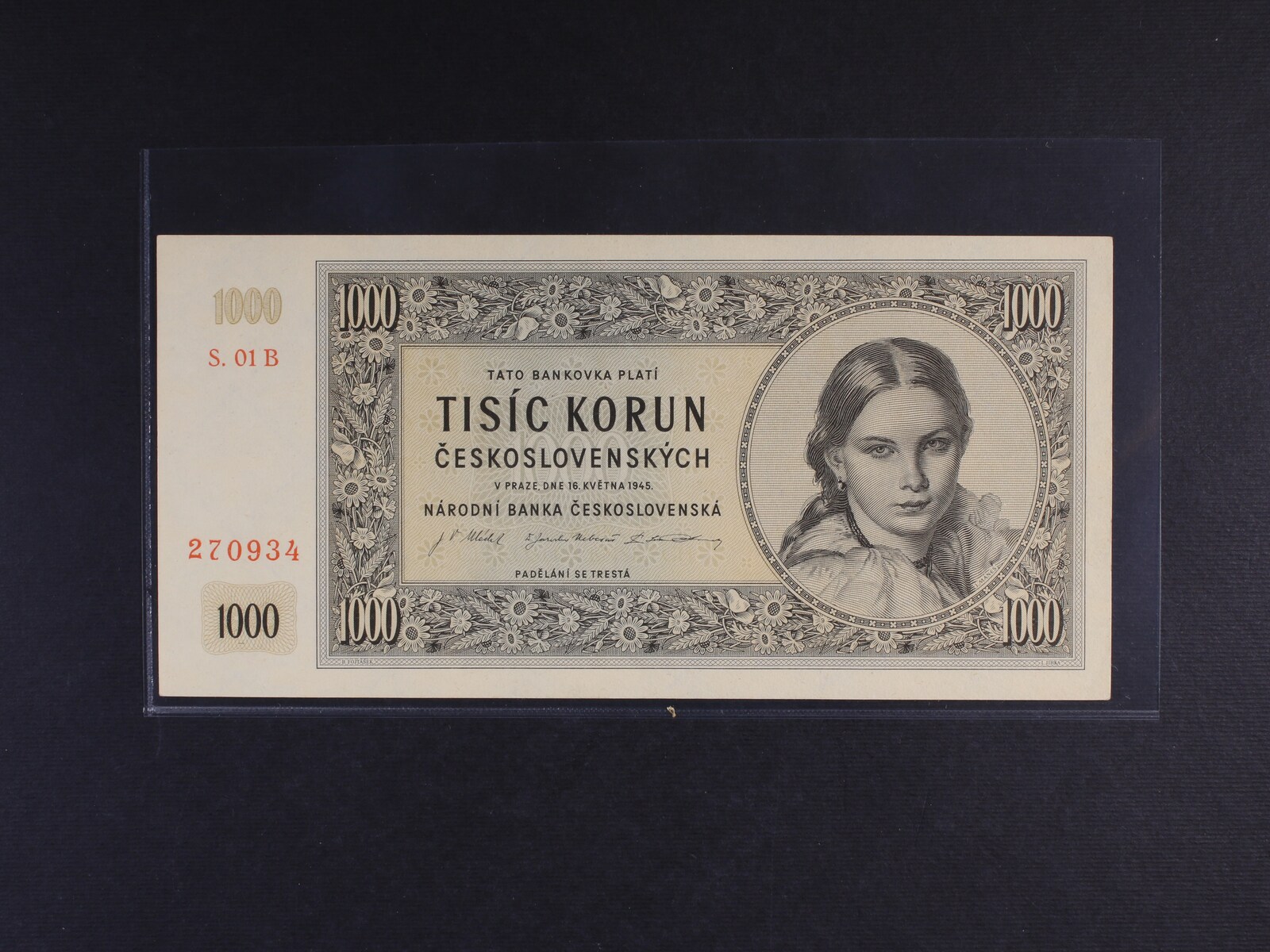 726 1000 Kčs 16.5.1945 série 01 B, Ba. 78b, Pi. 74a, první série 3000