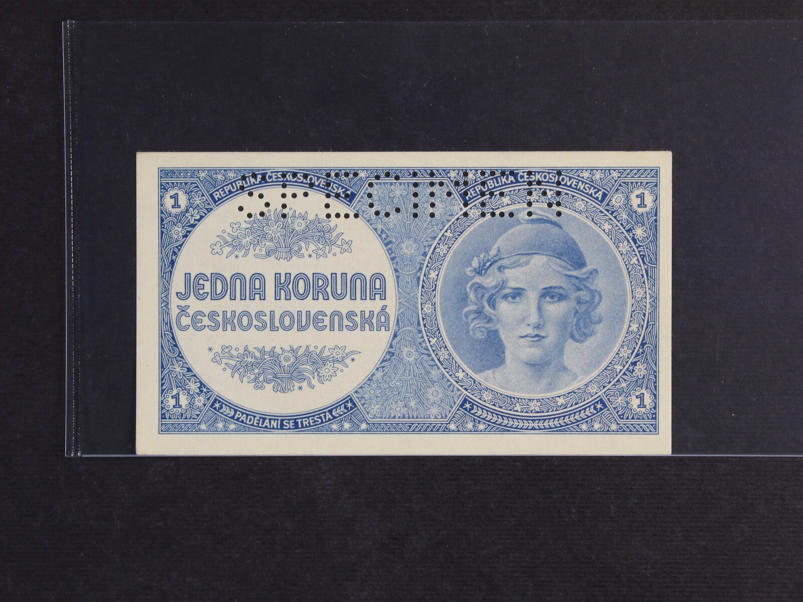 740 1 Kčs 1946 nevydaná, bankovní vzor s perforací SPECIMEN, Ba. N8, Pi. 58, He. N5a V1 5000