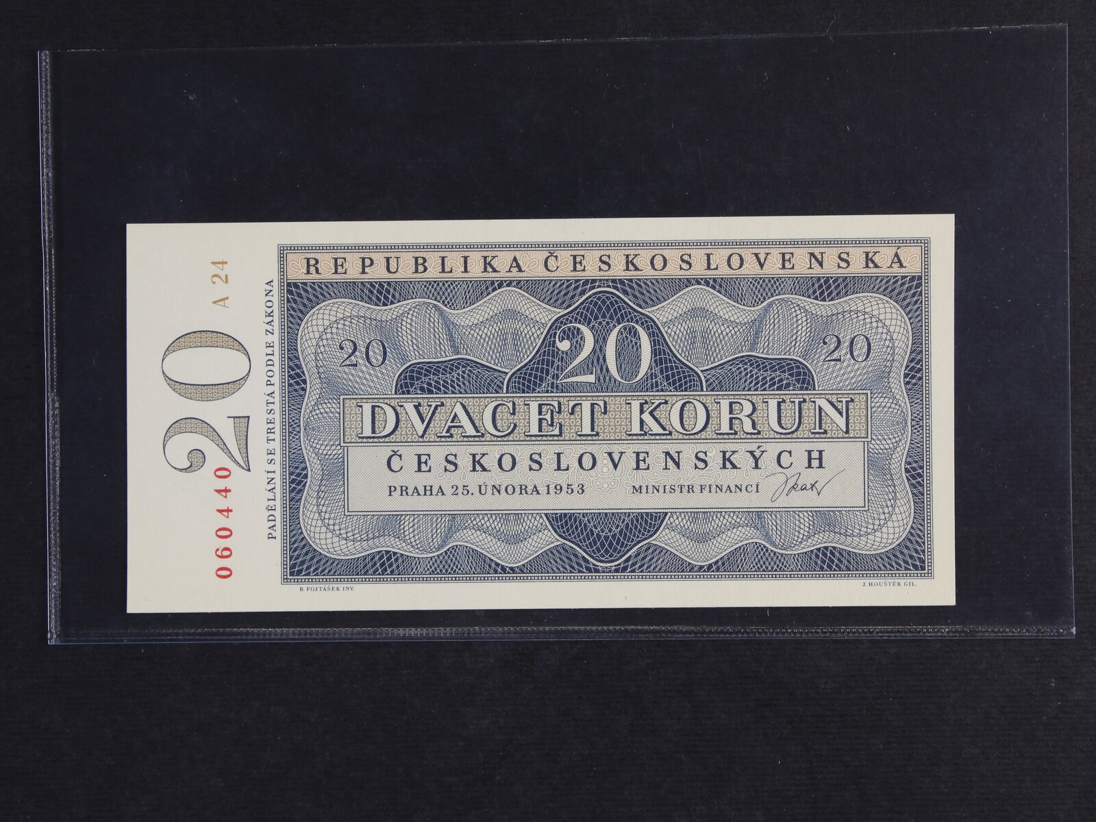 20 Kčs 25.2.1953 série A 24 nevydaná, původní exemlář, Ba. N14, Pi. 72A