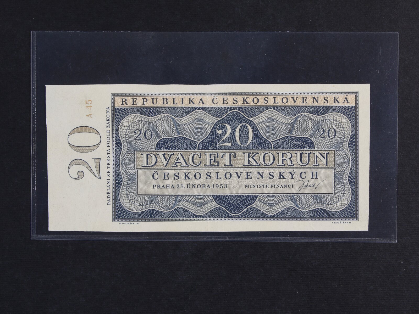 20 Kčs 25.2.1953 série A 45 nevydaná, bez čísla, původní exemplář