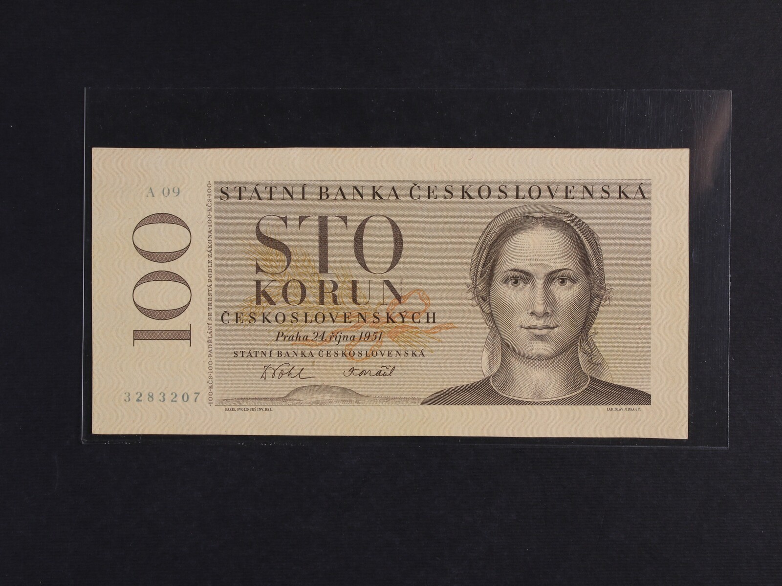 100 Kčs 24.10.1951 série A 09 nevydaná, původní exemplář s větším ořezem, Ba. N10, Pi. 76