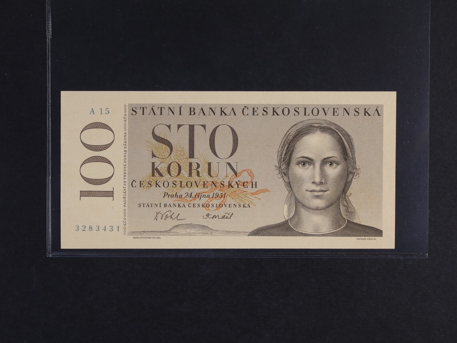 100 Kčs 24.10.1951 série A 15 nevydaná, Pi. 76, Ba. N10