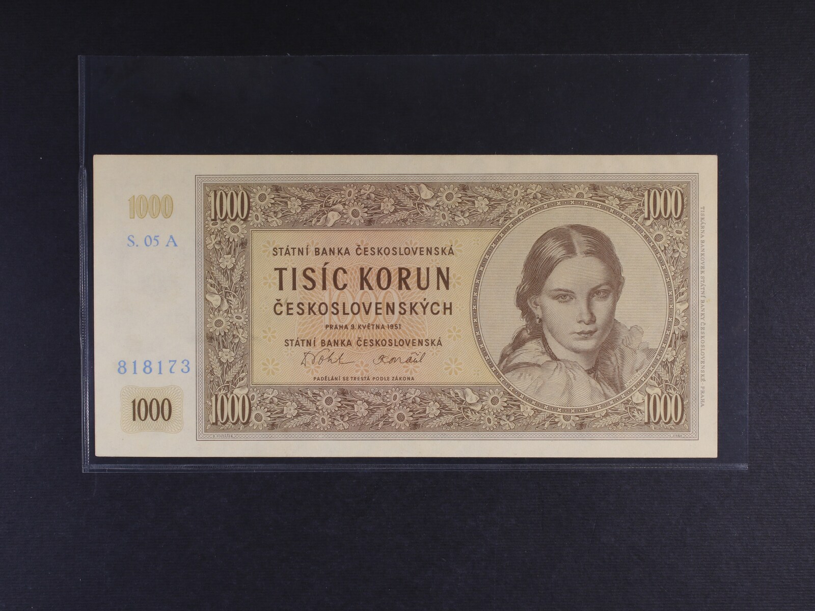 1000 Kčs 9.5.1951 série 05 A nevydaná, původní exemplář, Ba. N9, Pi. 77