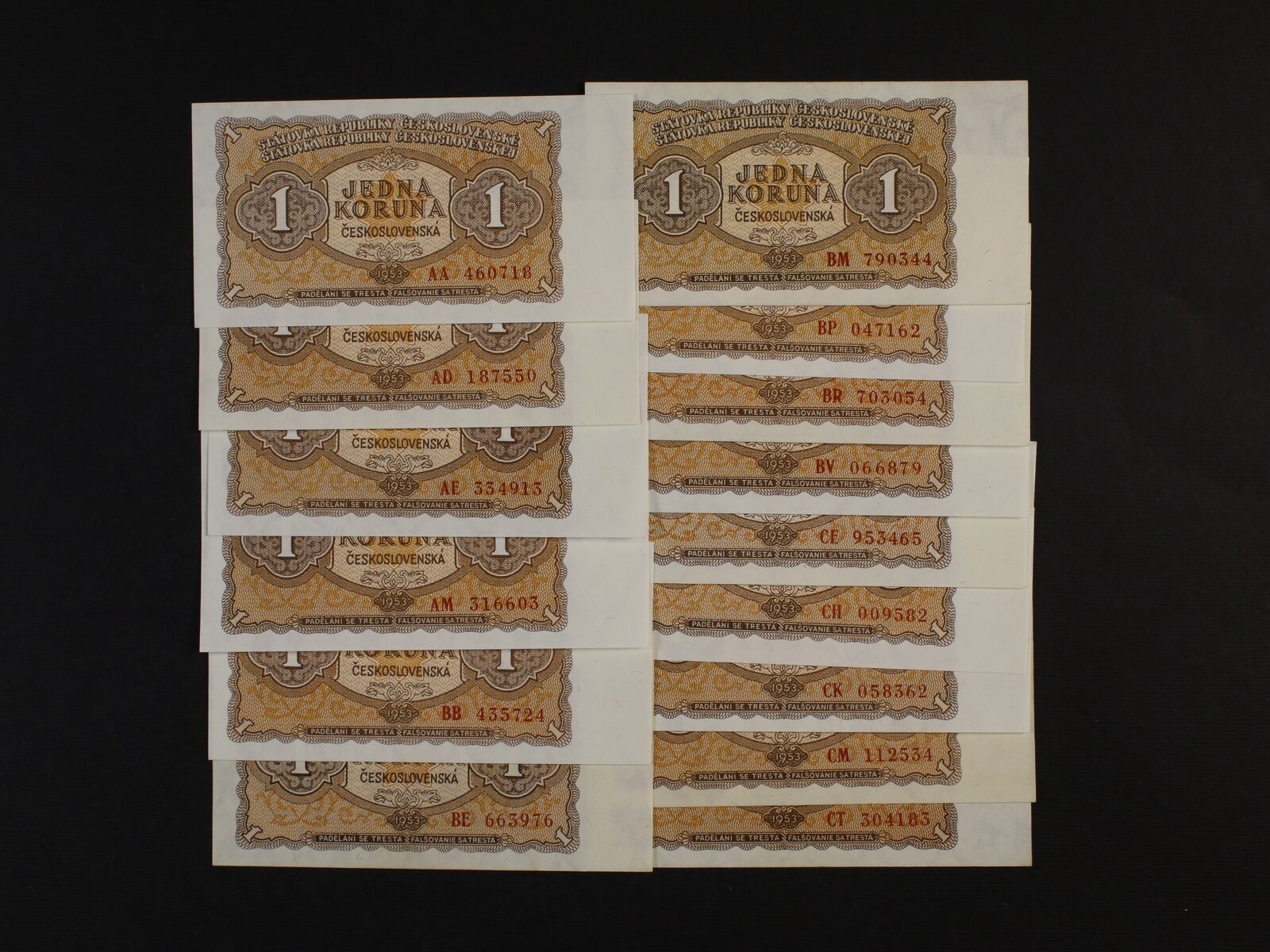 1 Kčs 1953 Goznak Moskva série AA, AD, AE, AM, BB, BE, BM, BP, BR, BV, CE, CH, CK, CM, CT, Ba. 86a, Pi. 78, 15 kusů