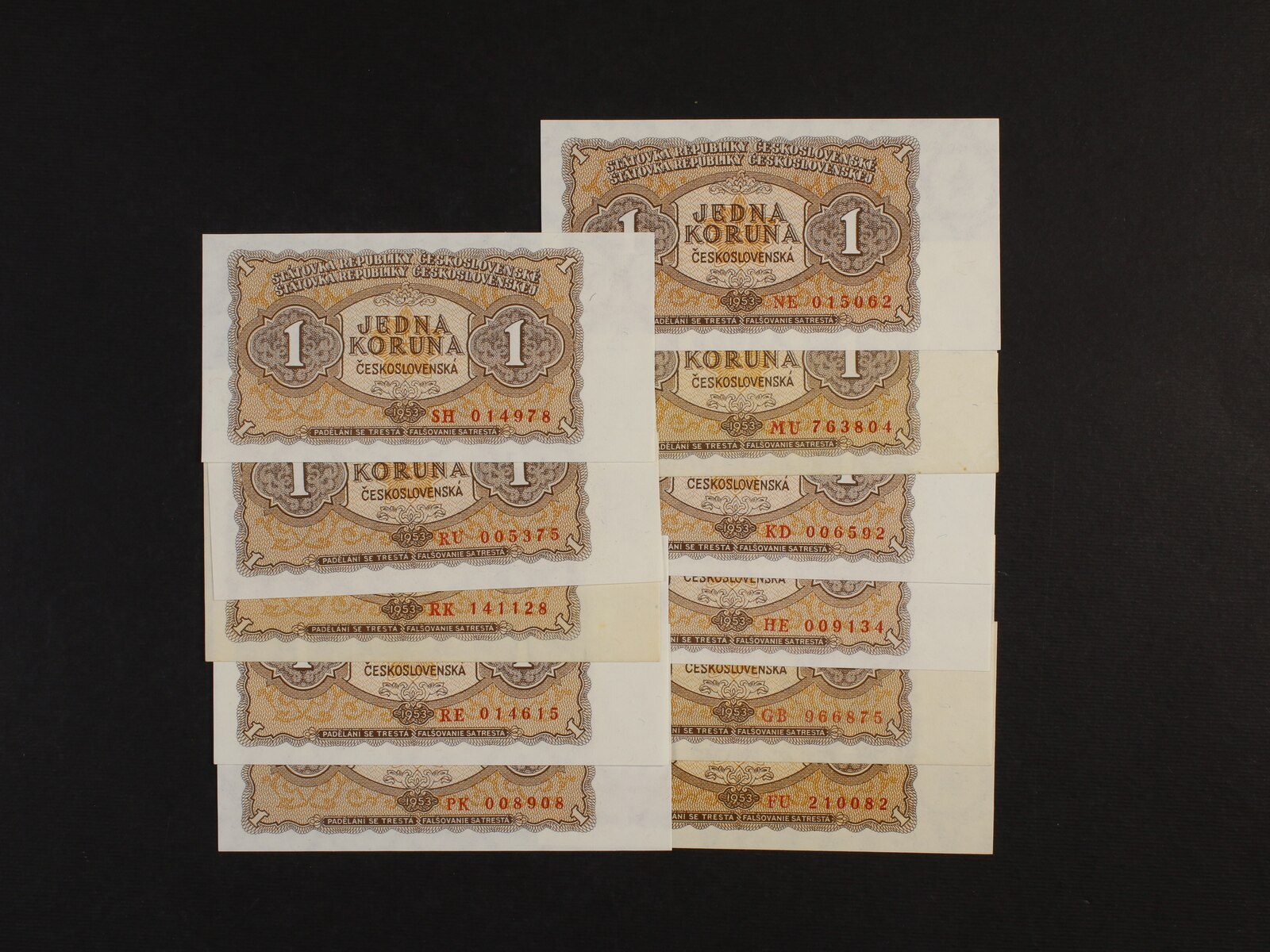 1 Kčs 1953 STC Praha série FU, GB, HE, KD, MU, NE, PK, RE, RK, RU, SH, Ba. 86b, Pi. 78, 11 kusů