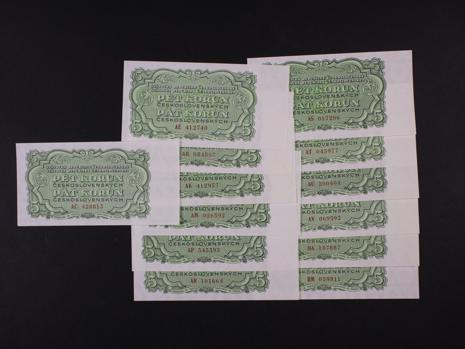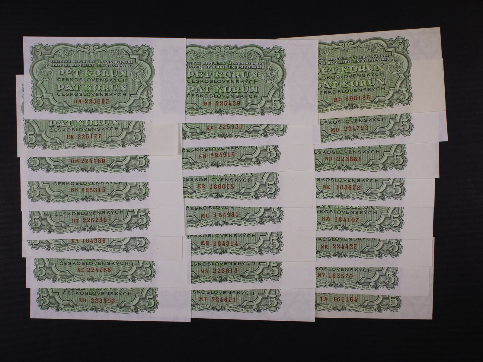 5 Kčs 1953 Goznak Moskva série AC, AE, AH, AK, AM, AP, AR, AS, AT, AU, AV, BA, BM, Ba. 88a, Pi. 80, 13 kusů