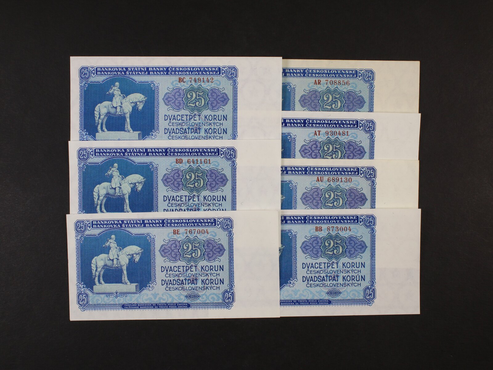 25 Kčs 1953 Goznak Moskva série AR, AT, AU, BB, BC, BD, BE, Ba. 90a, Pi. 82, 7 kusů