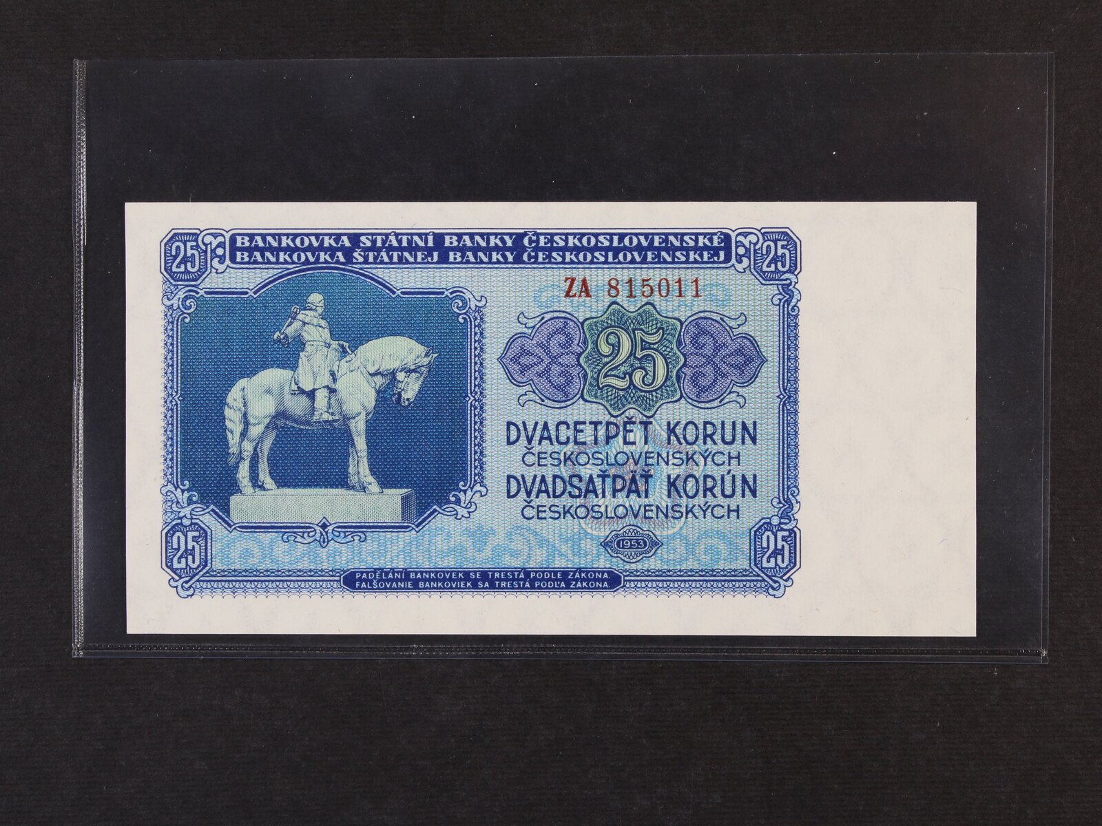 25 Kčs 1953 Goznak Moskva série ZA, Ba. 90a, Pi. 84a