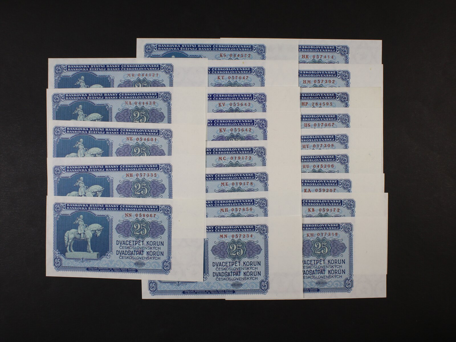 25 Kčs 1953 STC Praha série HK, HM, HP, HS, HT, HU, KA, KB, KH, KS, KT, KV, MC, ME, MH, MN, MR, NA, NE, NH, NN, Ba. 90b, Pi. 82, 22 kusů
