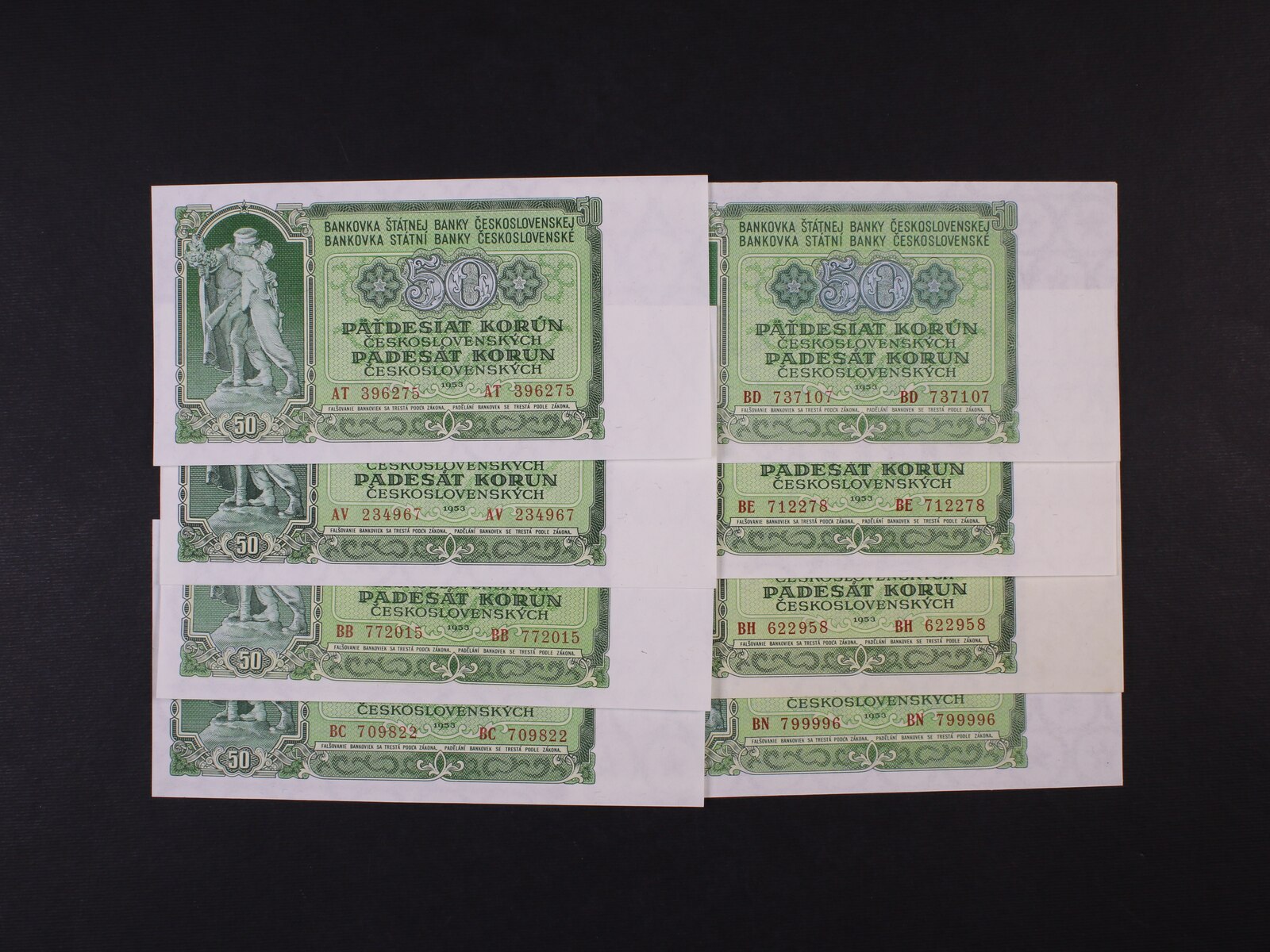 50 Kčs 1953 Goznak Moskva série AT, AV, BB, BC, BD, BE, BH, BN, Ba. 91a, Pi. 83, 8 kusů