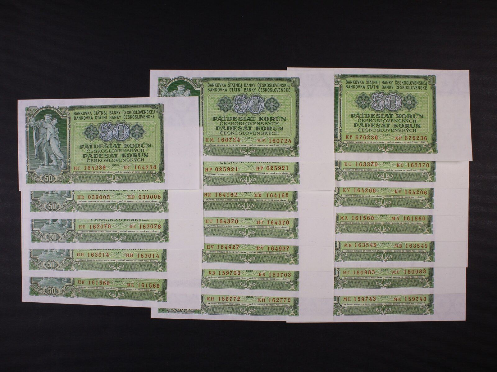 50 Kčs 1953 STC Praha série HC, HD, HE, HH, HK, HM, HP, HR, HT, HV, KB, KH, KP, KU, KV, MA, MB, MC, ME, Ba. 91b, Pi. 83, 19 kusů
