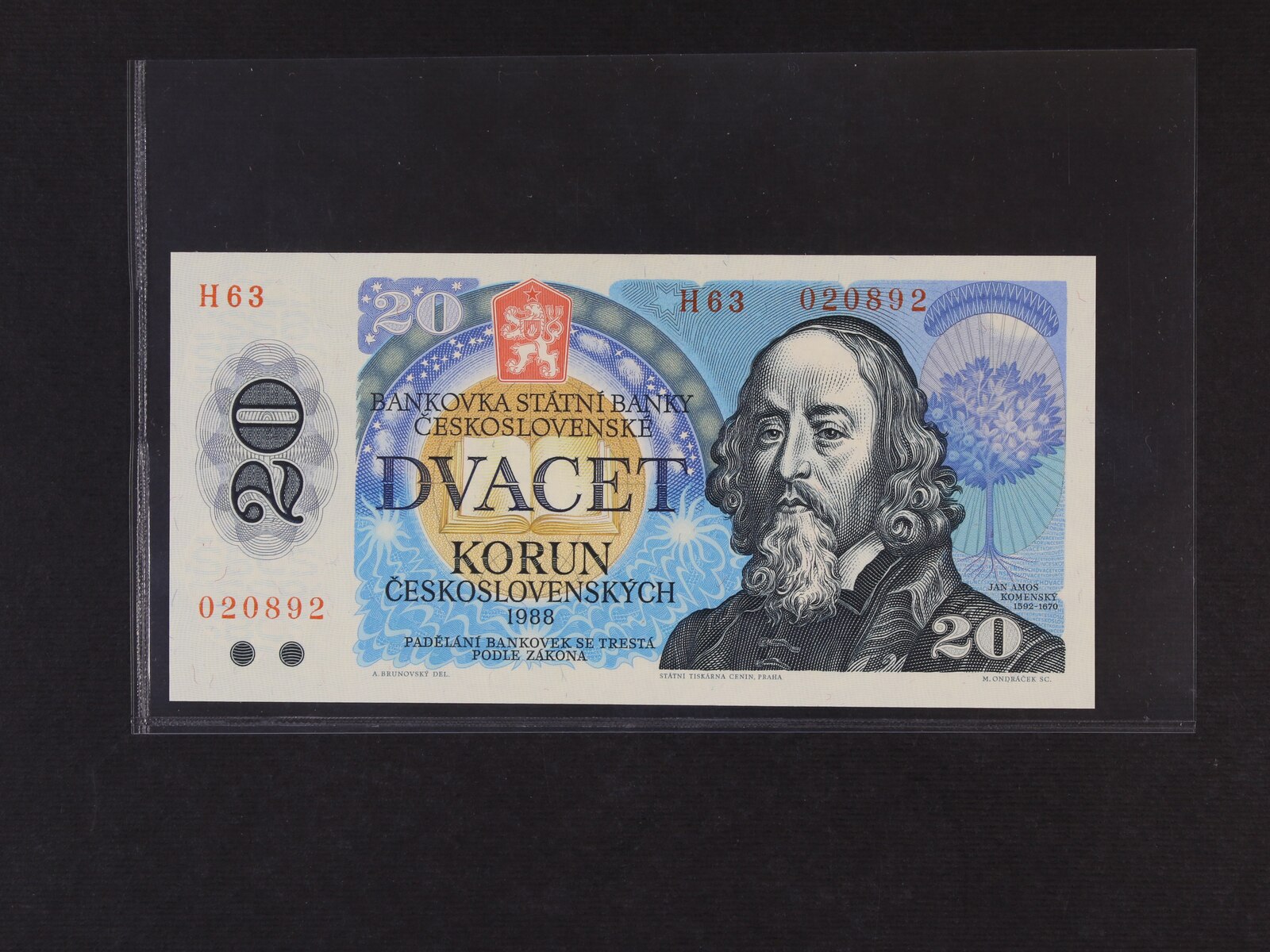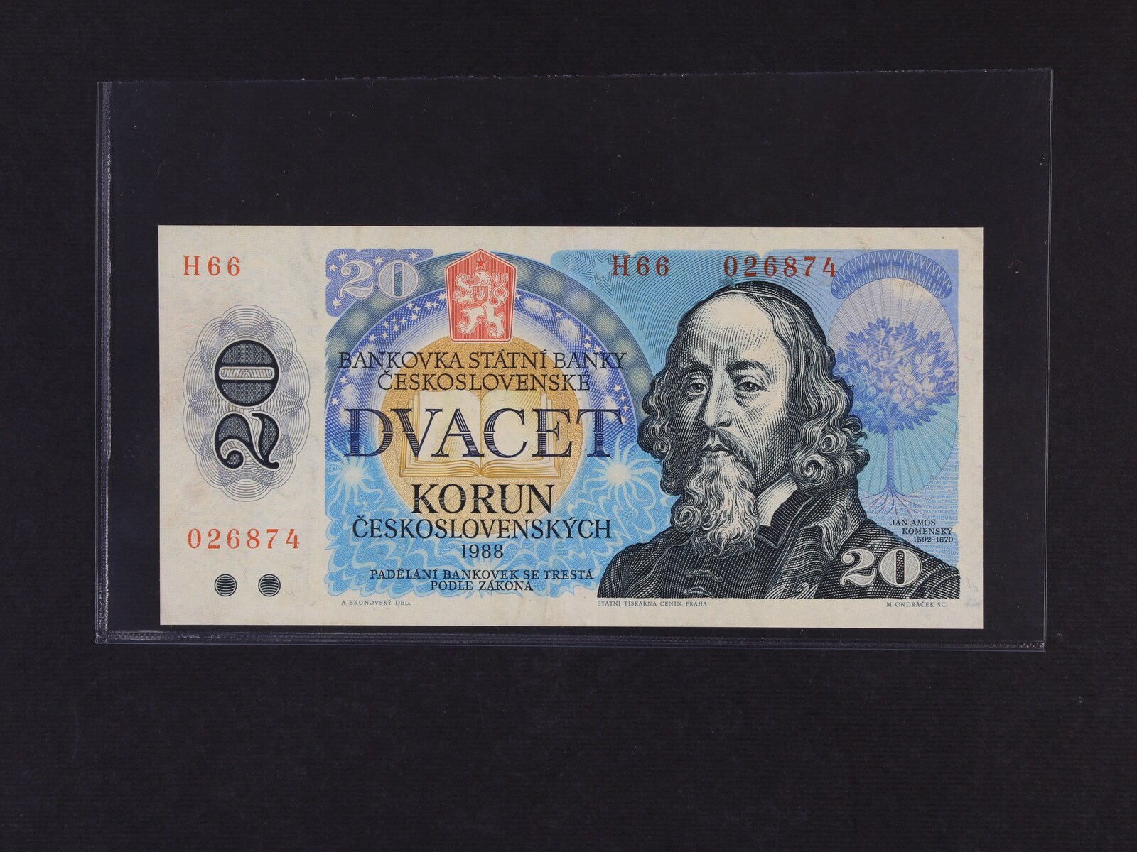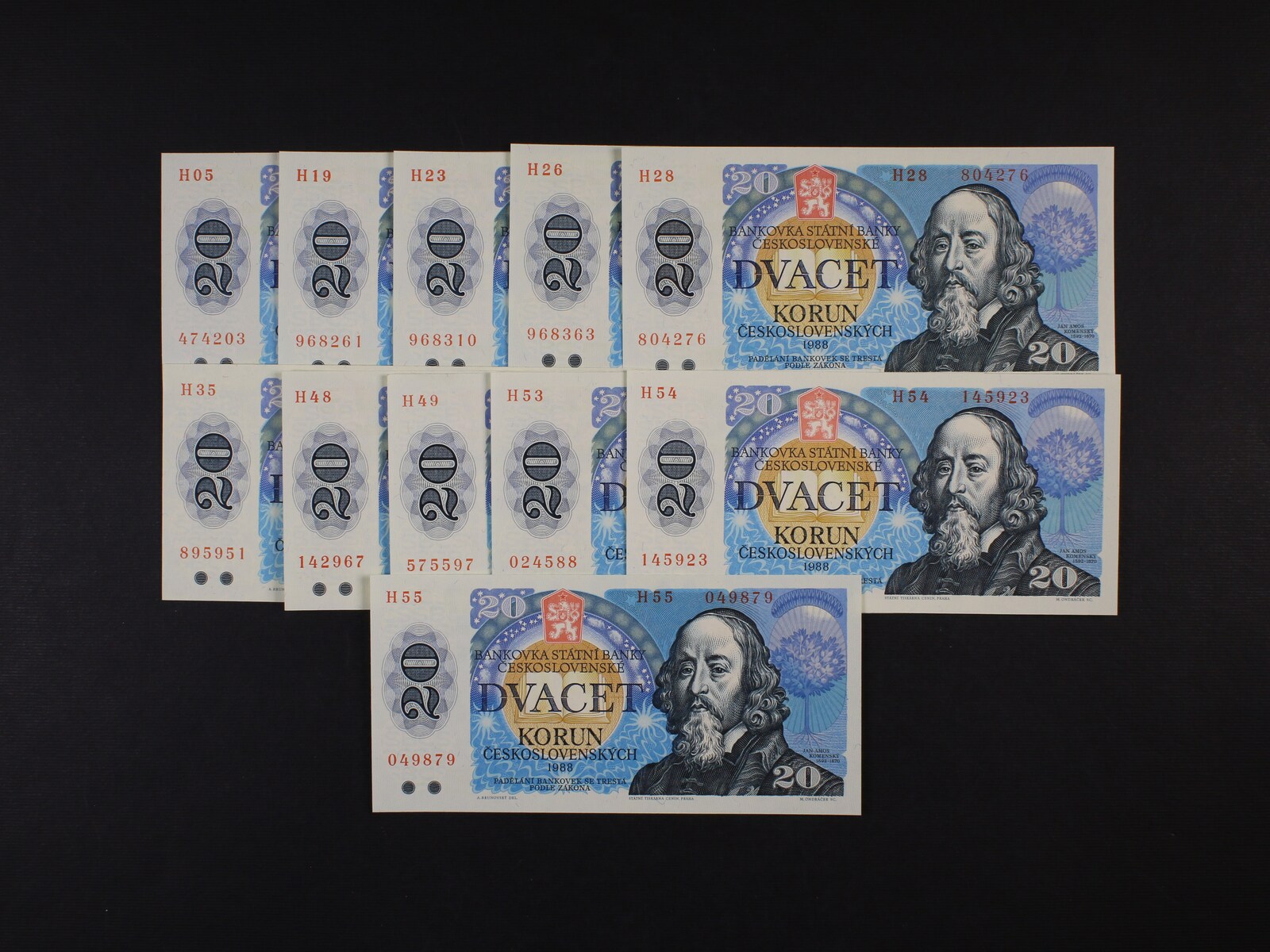 20 Kčs 1988 série H 05, 19, 23, 26, 28, 35, 48, 49, 53, 54, 55, Ba. 105, Pi. 95a, 11 kusů