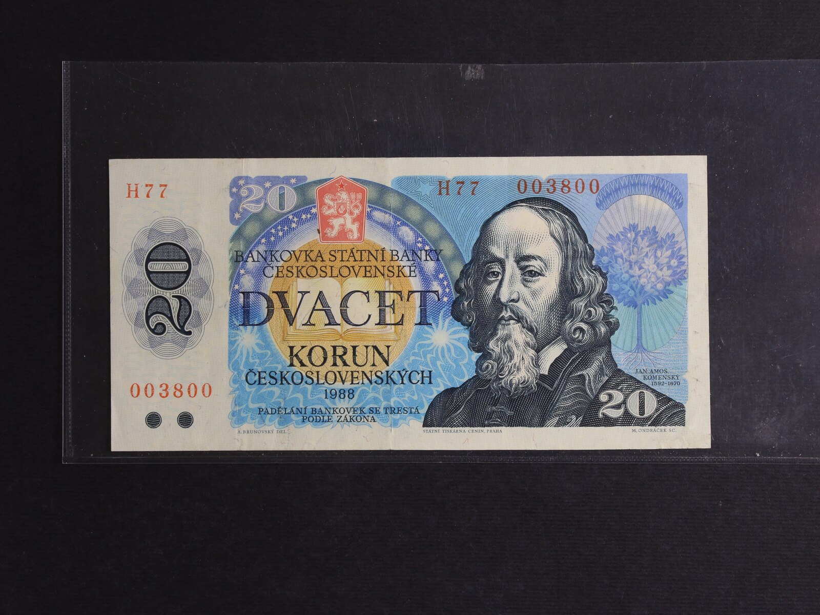 20 Kčs 1988 série H 77 003800, vzácně se vyskytující vysoká série, Ba. 105, Pi. 95a
